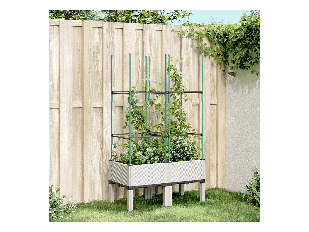 Jardinière avec treillis blanc 40x40x142,5 cm PP FR14459
