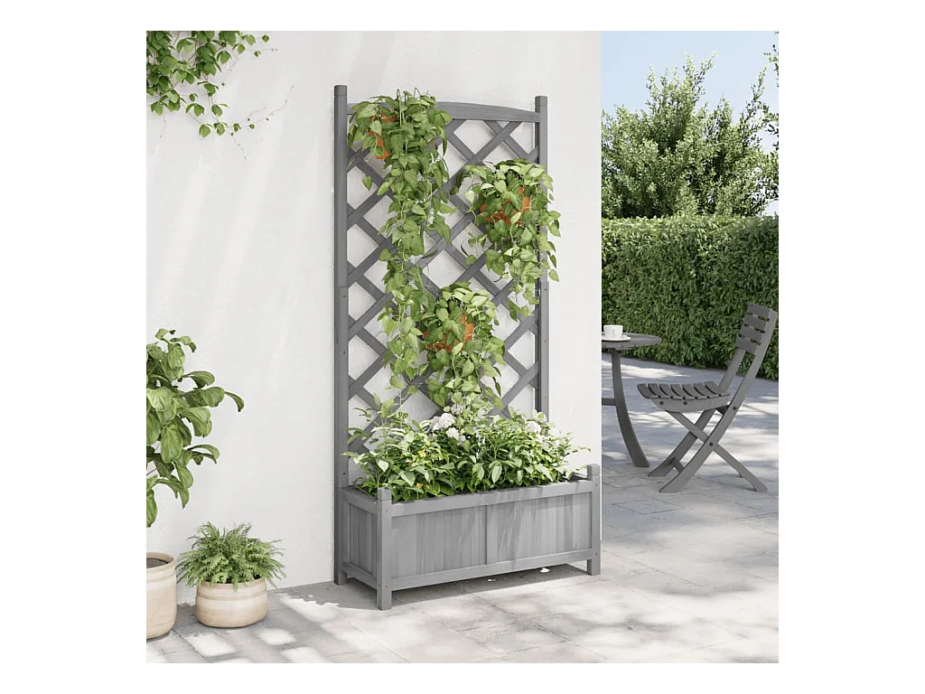Jardinière avec treillis gris bois massif de sapin FR31854
