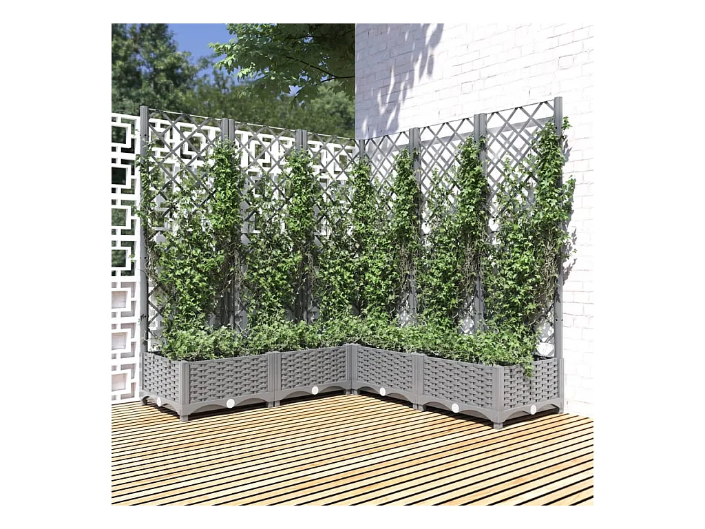 Jardinière avec treillis Gris clair 120x120x121,5 cm PP