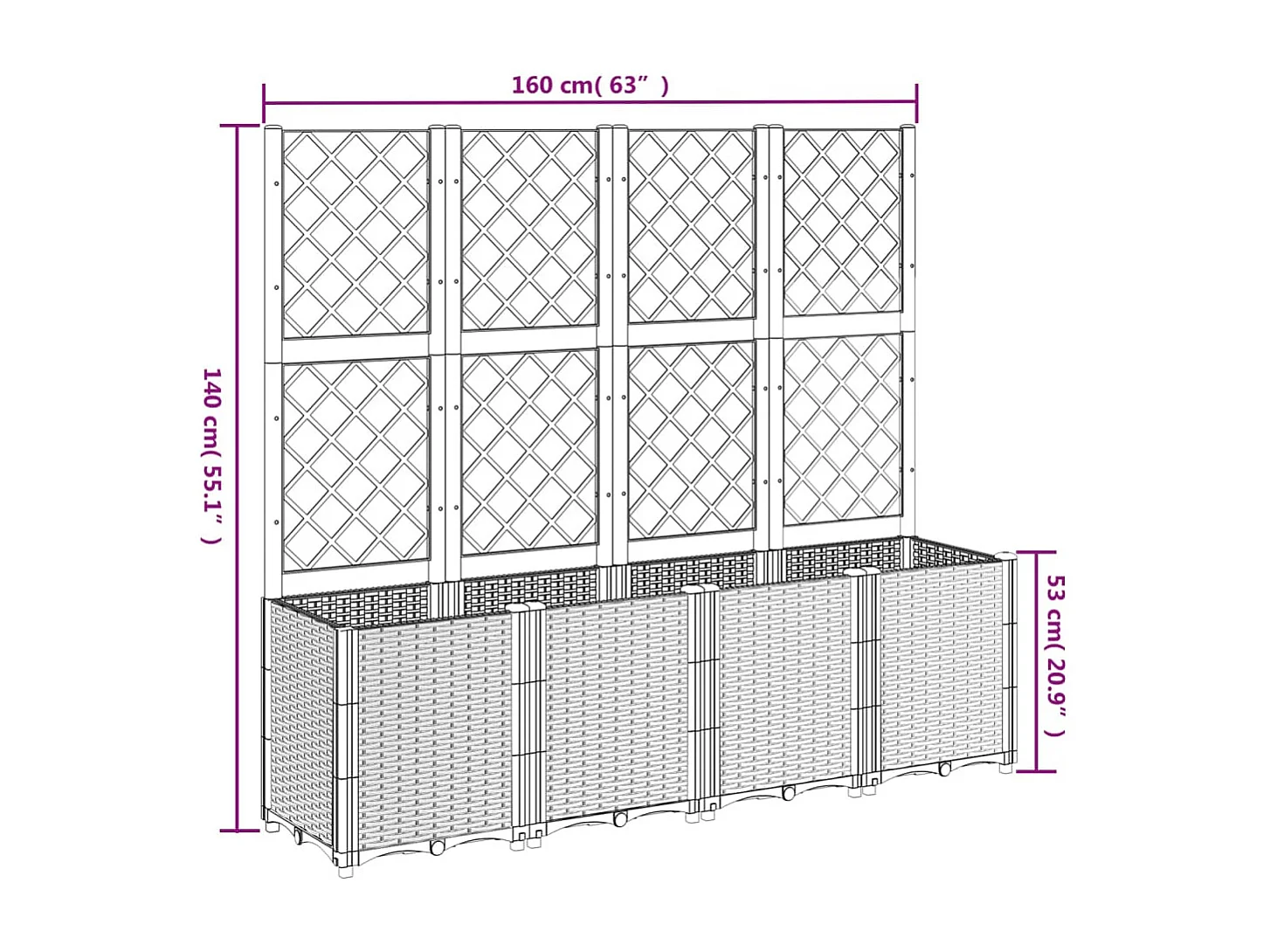 Jardinière avec treillis gris clair 160x40x140 cm PP