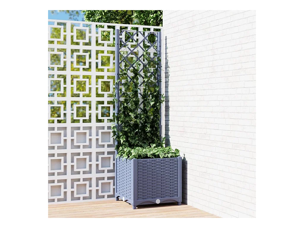 Jardinière avec treillis Gris foncé 40x40x121,5 cm PP BE8164