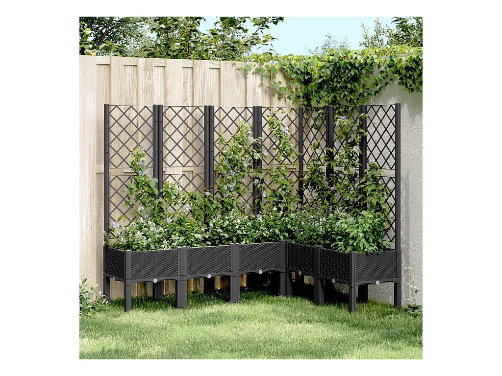 Jardinière avec treillis noir 160x40x142,5 cm PP