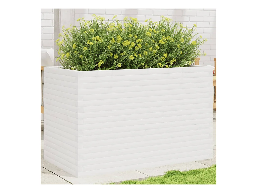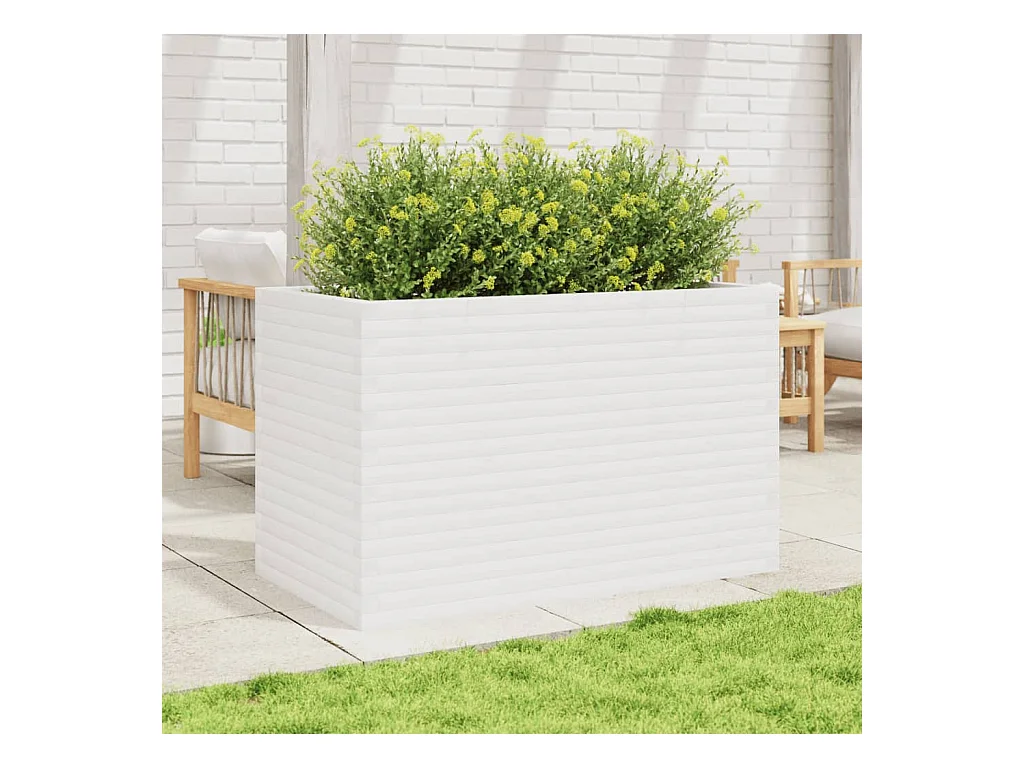 Jardinière blanc 110x60x68,5 cm bois de pin massif
