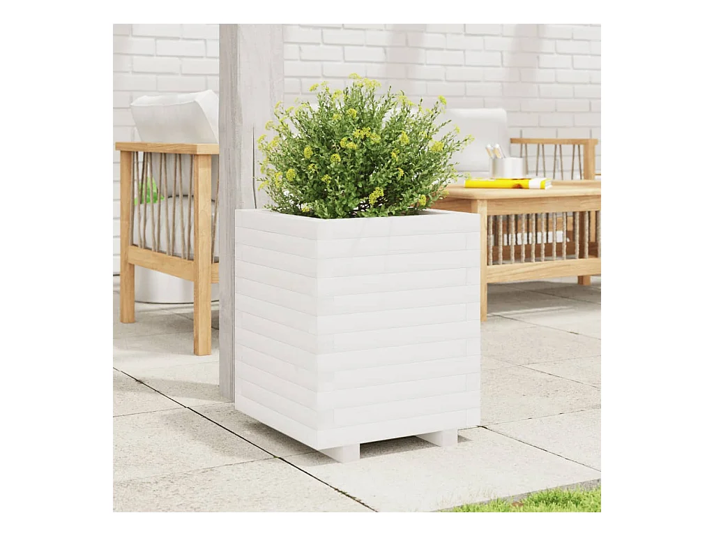 Jardinière blanc 50x50x49,5 cm bois de pin massif FR19385