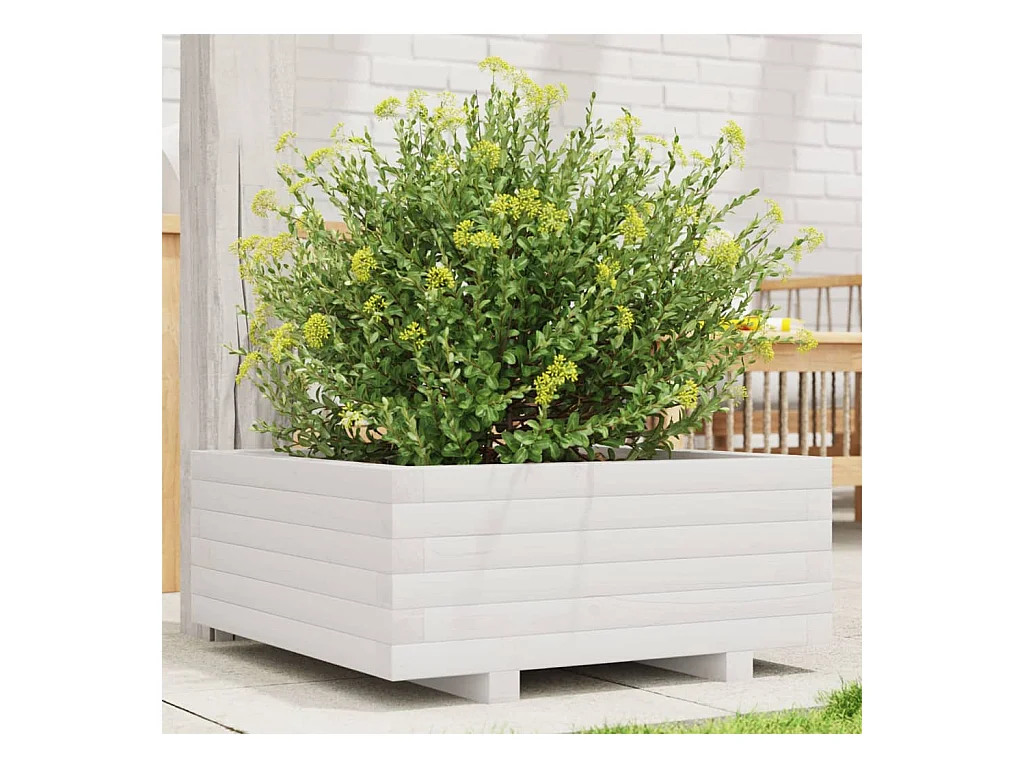 Jardinière blanc 80x80x26,5 cm bois de pin massif FR37984