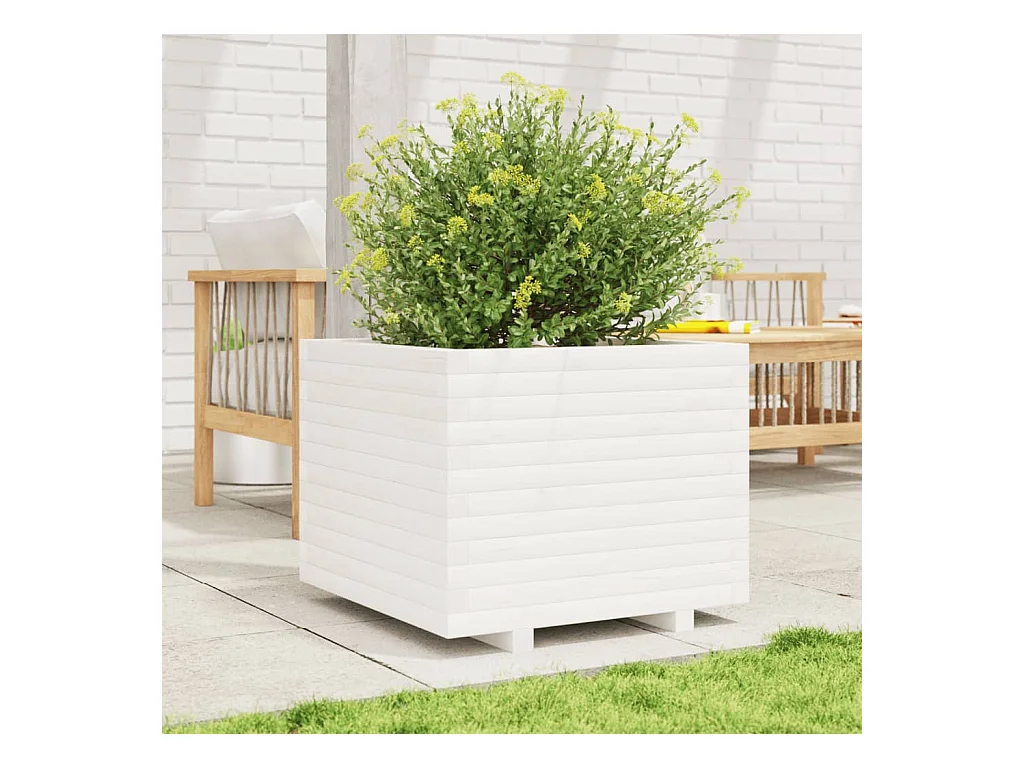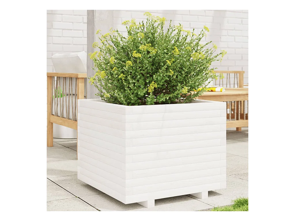 Jardinière blanc 60x60x49,5 cm bois de pin massif