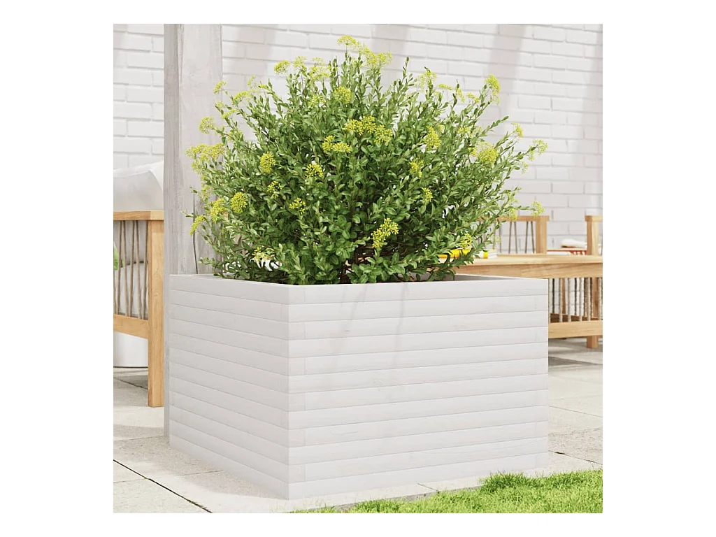 Jardinière blanc 70x70x68,5 cm bois de pin massif FR32489