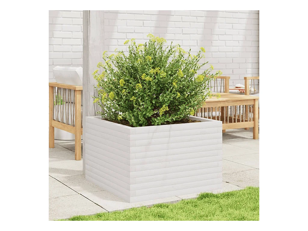Jardinière blanc 70x70x45,5 cm bois de pin massif FR92423