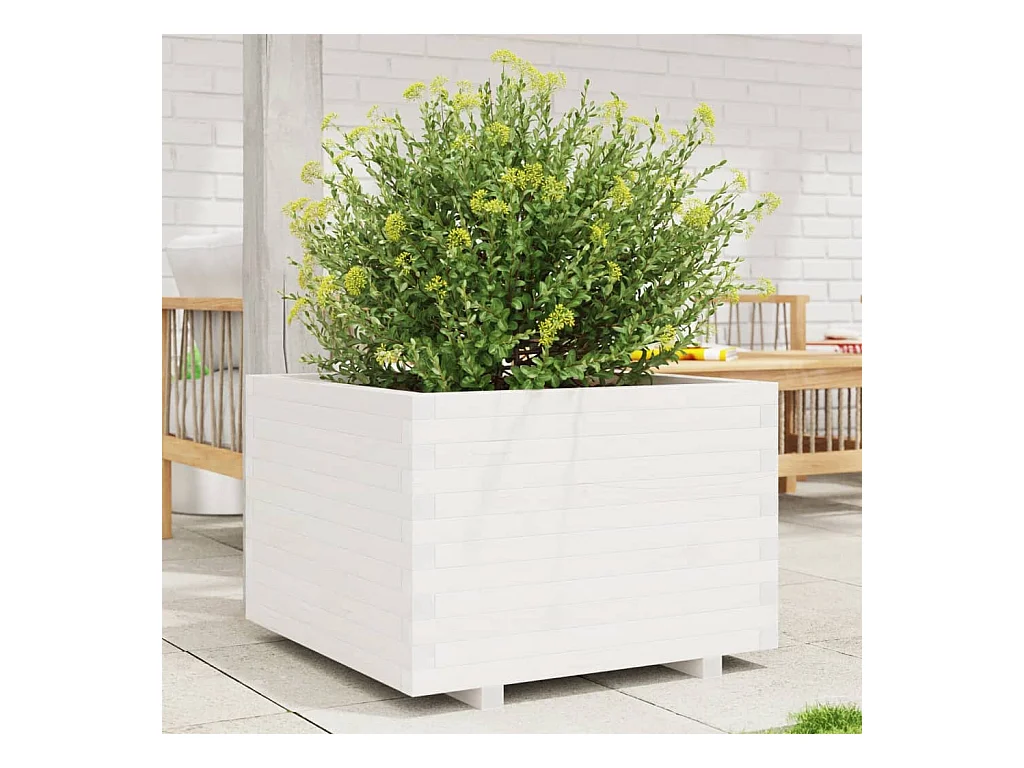 Jardinière blanc 70x70x45,5 cm bois de pin massif FR92423
