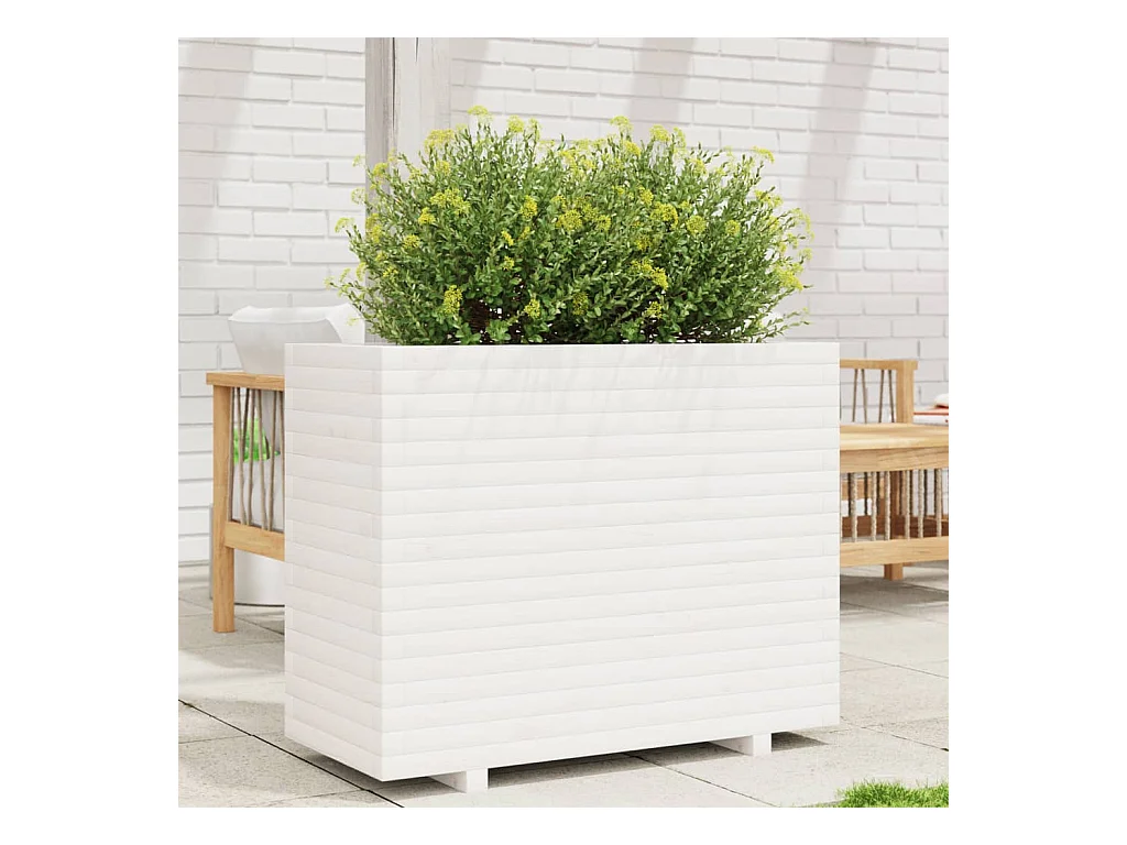 Jardinière blanc 90x60x72,5 cm bois de pin massif FR70822