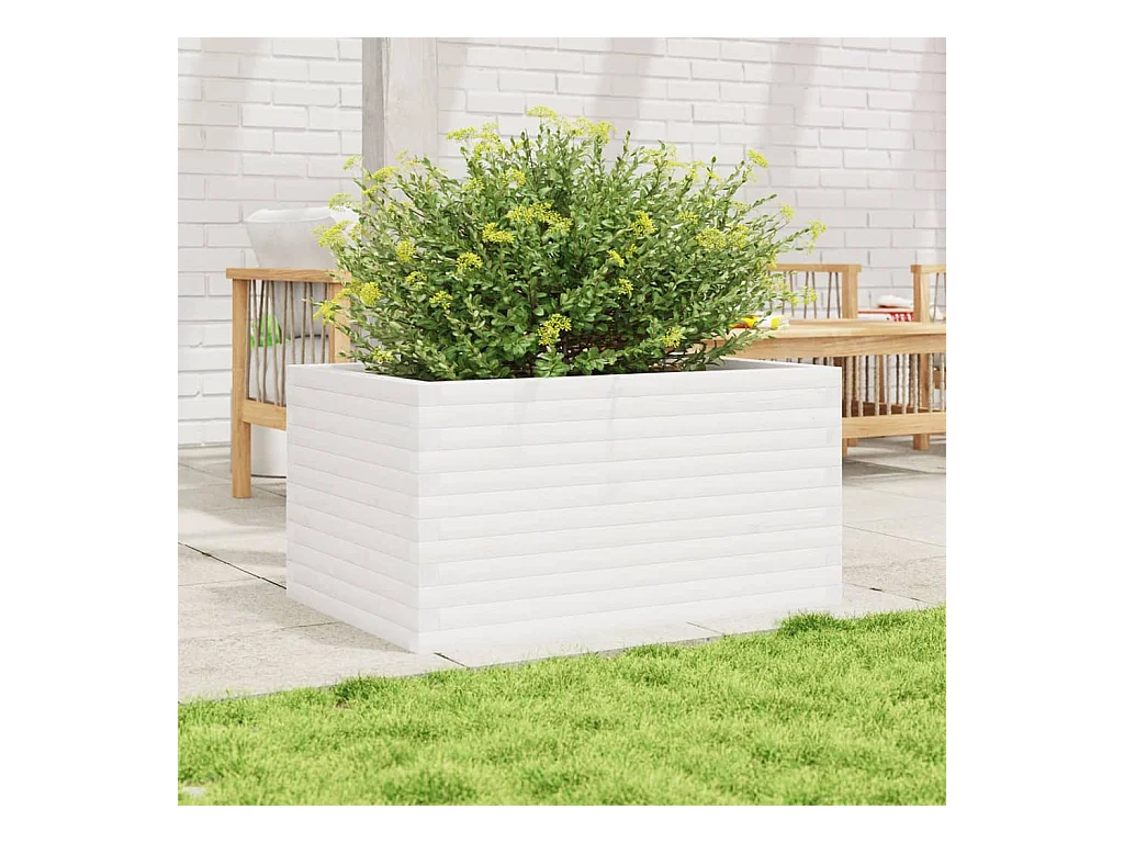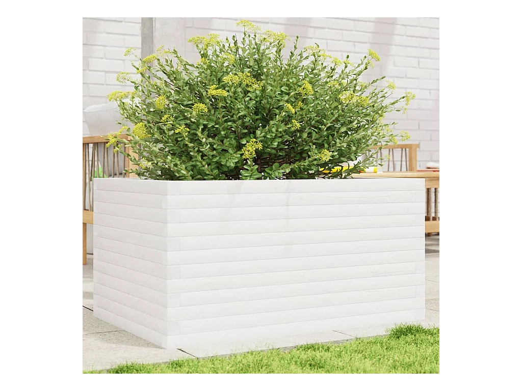 Jardinière blanc 90x60x46 cm bois de pin massif