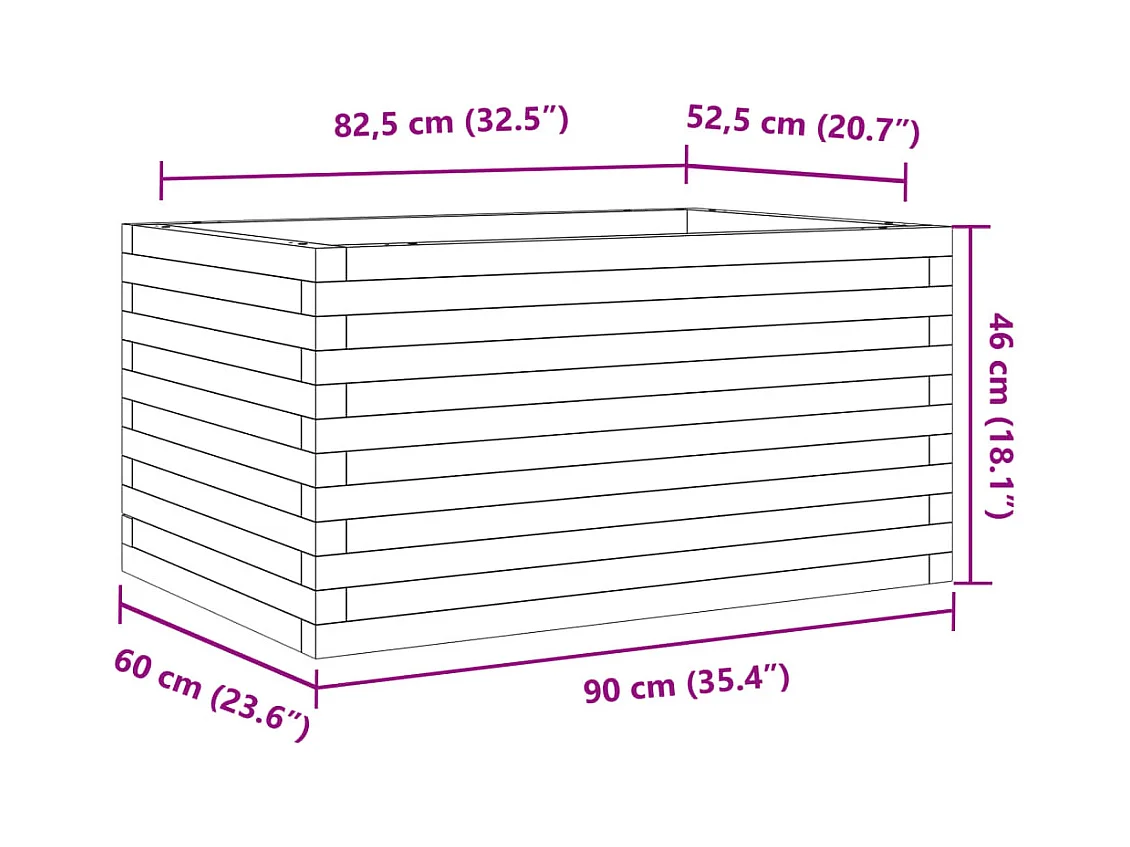Jardinière cire marron 90x60x46 cm bois de pin massif
