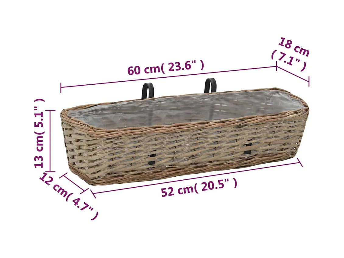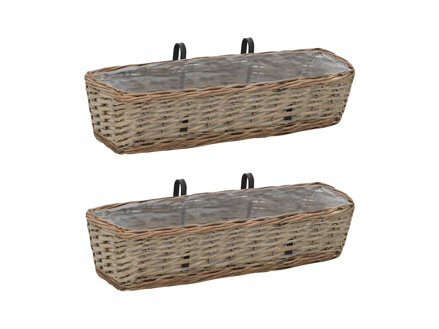 Jardinière de balcon 2 pcs Osier avec doublure en PE 60 cm