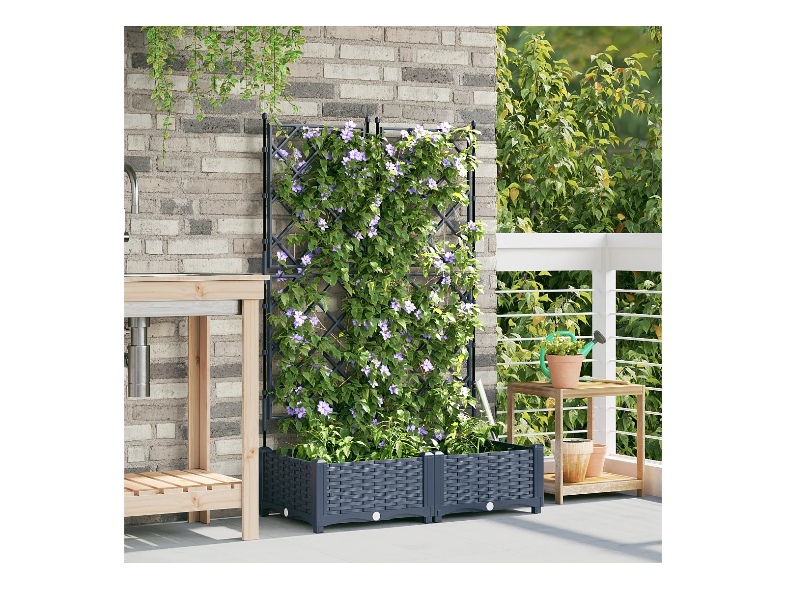 Jardinière de jardin avec treillis 2 pcs Grise 80x40x125.5 cm