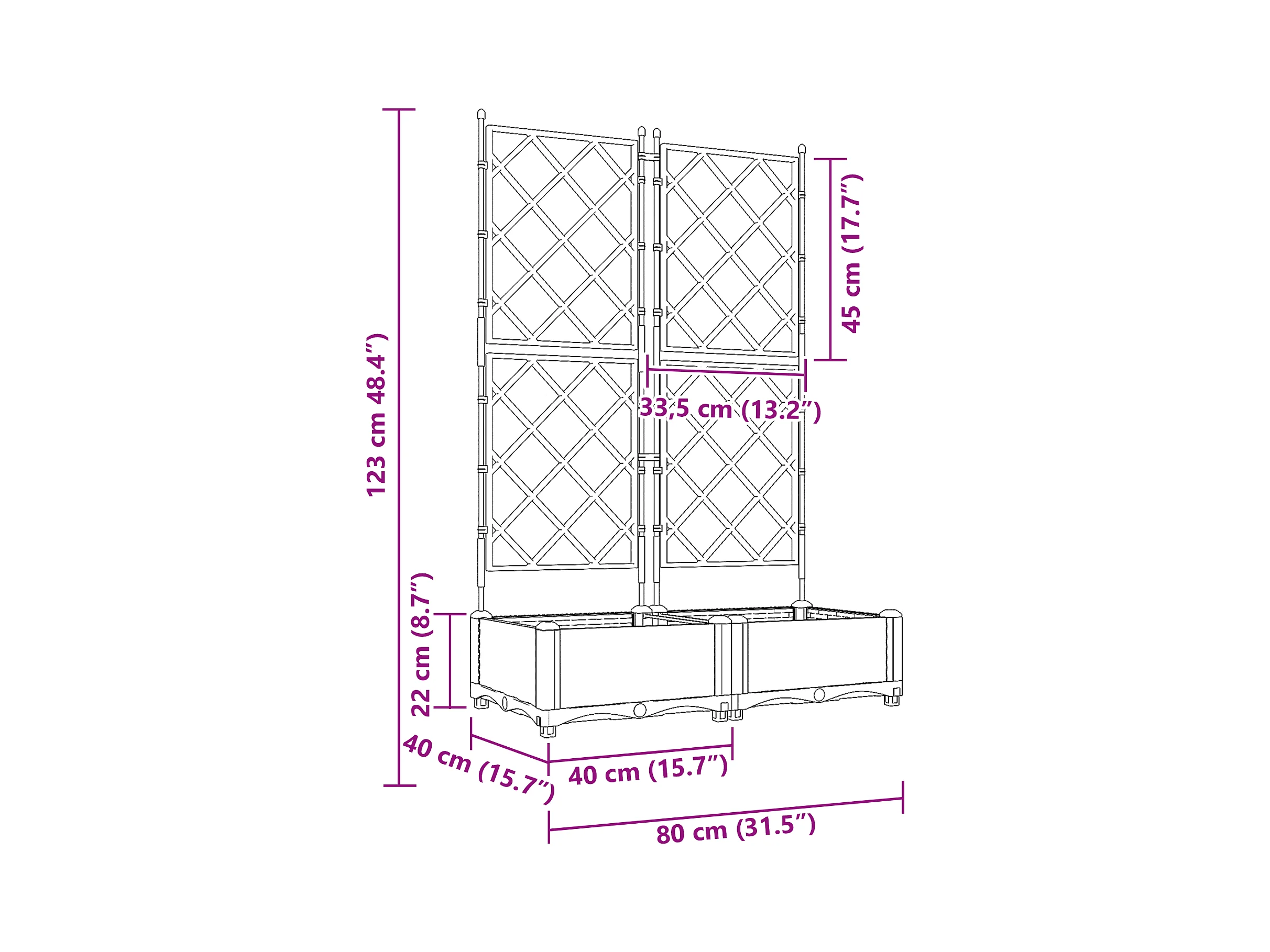 Jardinière avec Treille 2 pcs Grise 80x40x143 cm