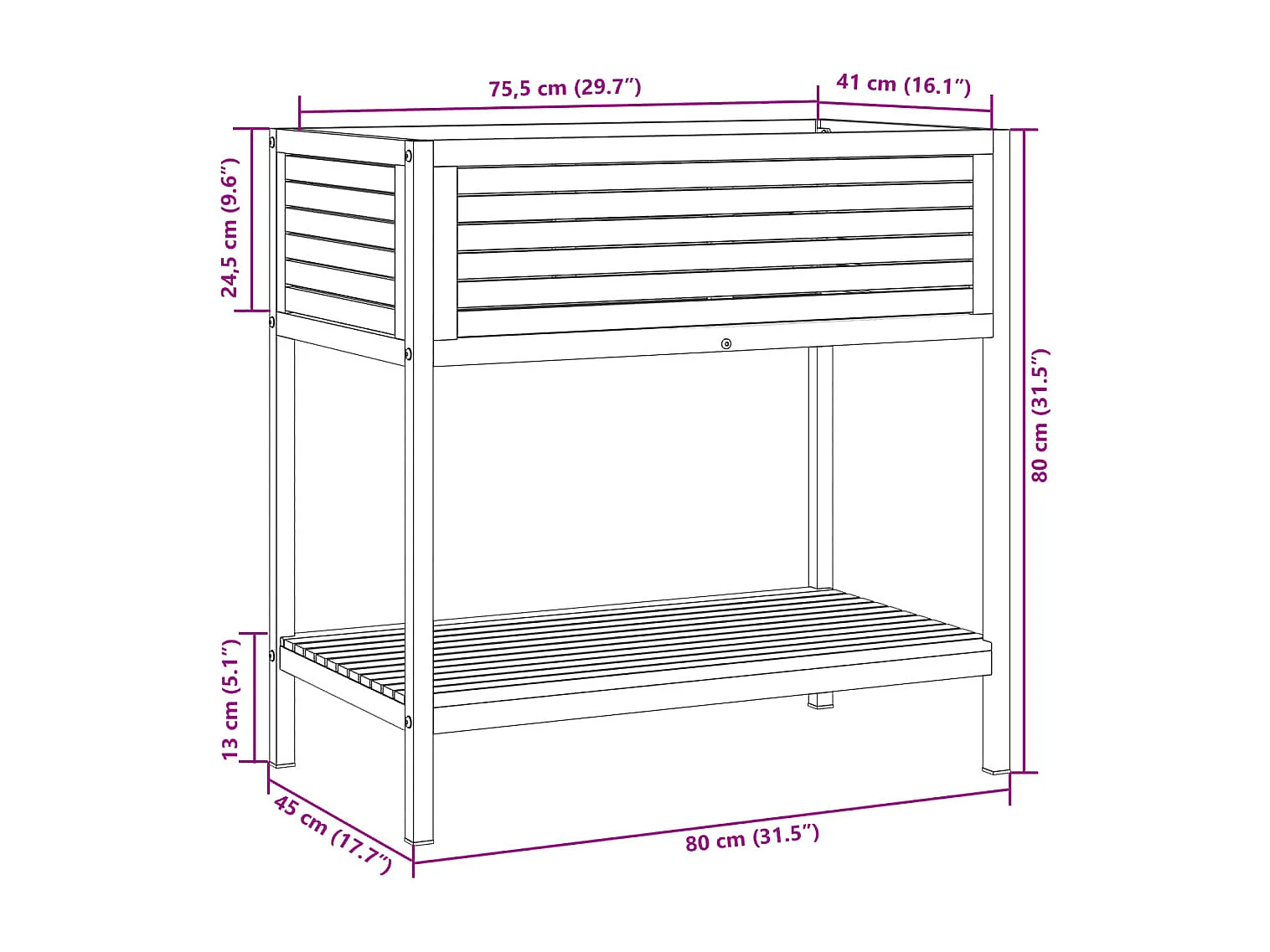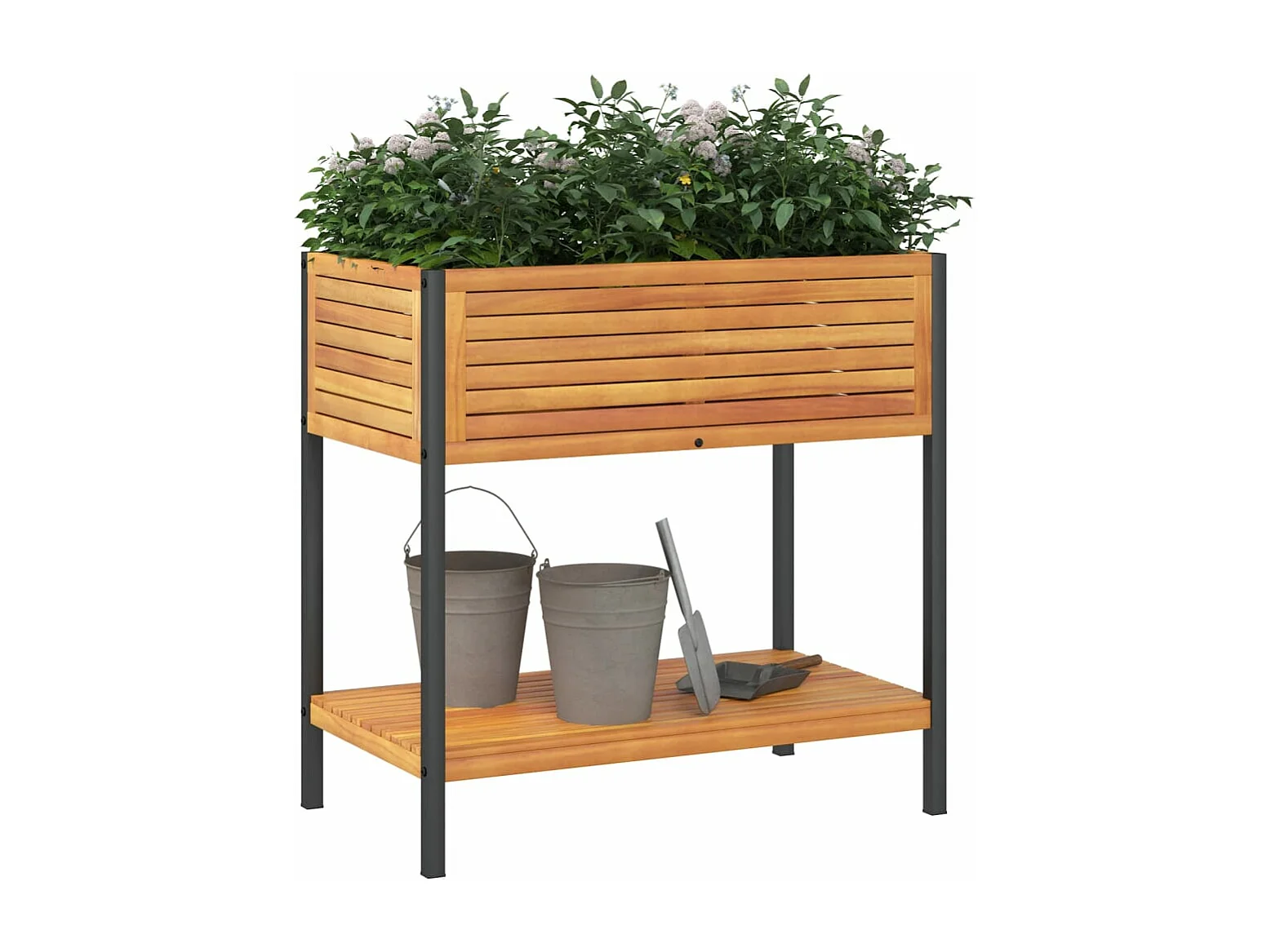 Jardinière et étagère 80x45x80 cm bois massif d'acacia et acier
