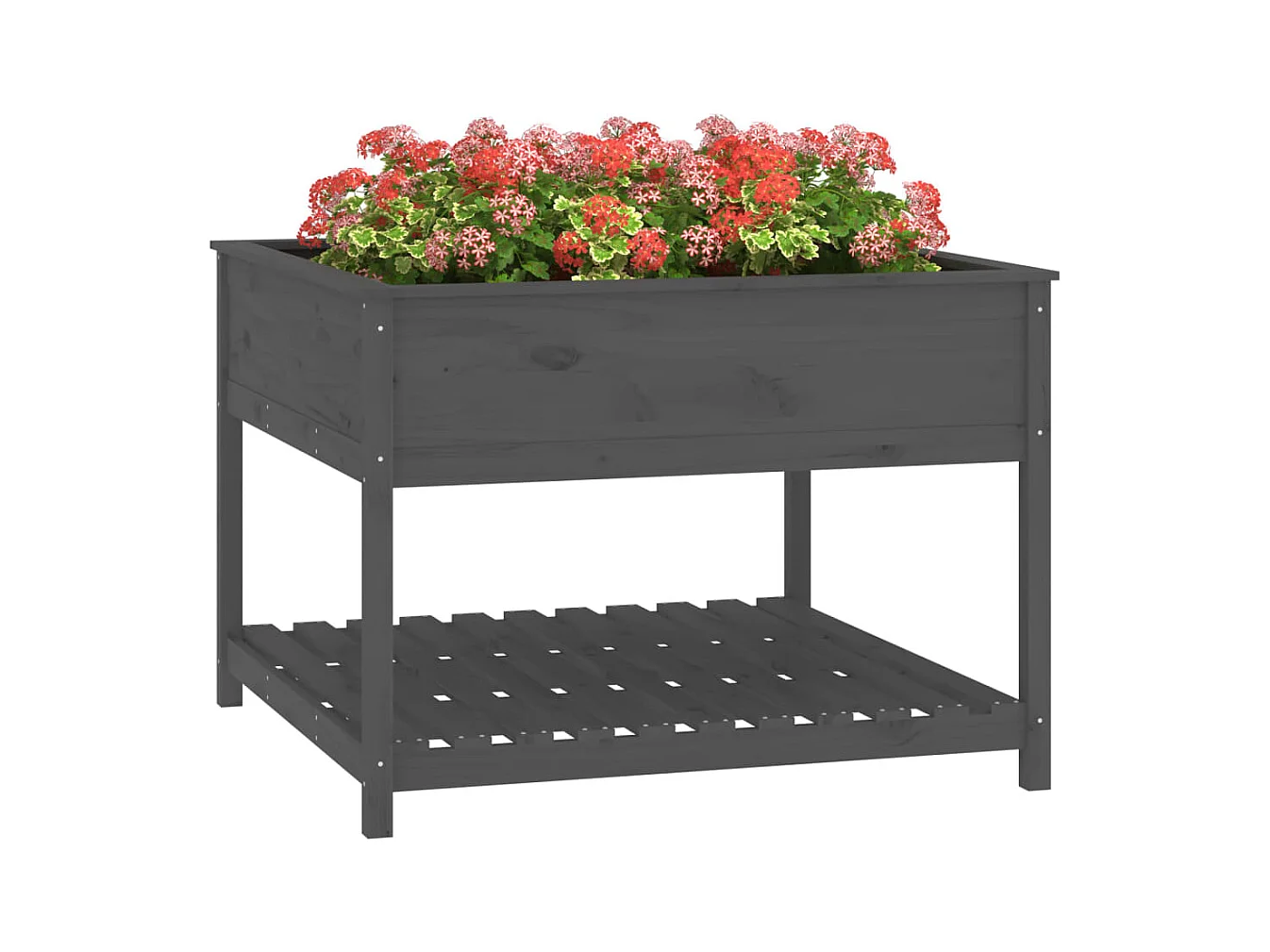 Jardinière avec étagère Gris 82,5x82,5x81 cm Bois massif de pin BE2658