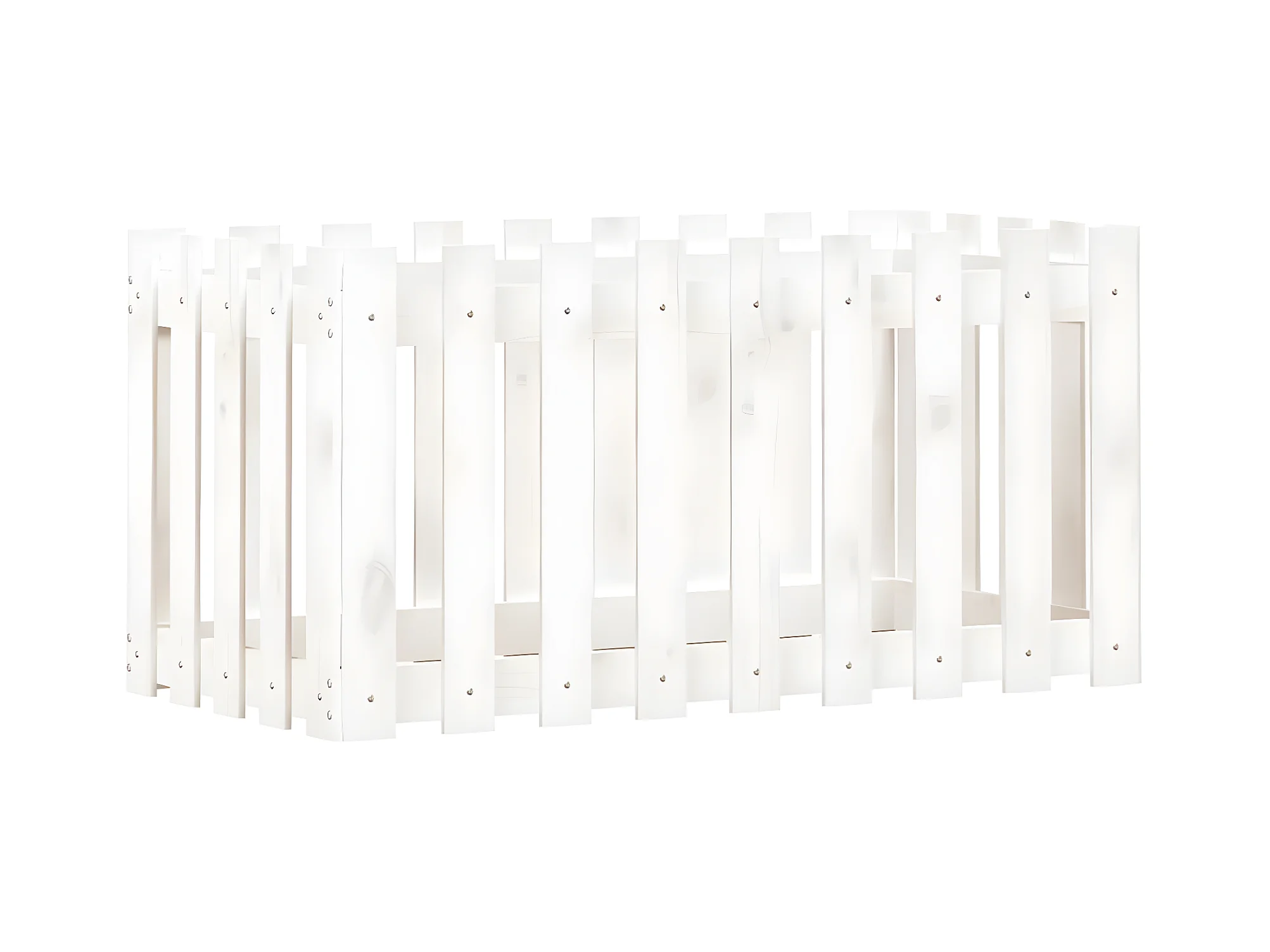 Jardinera elevado jardín con valla madera pino blanco 100x30x30cm ES77479
