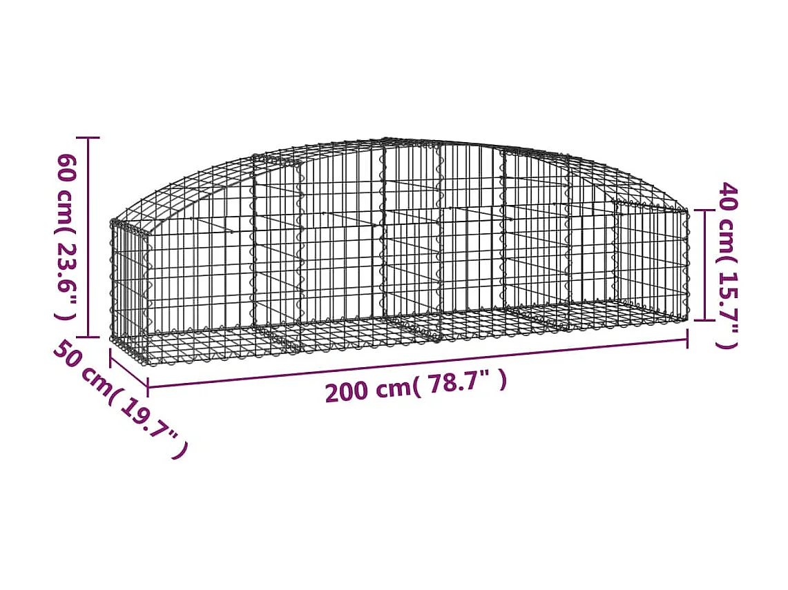 Panier de gabions arqué 200x50x40/60 cm Fer galvanisé WVGQ7435