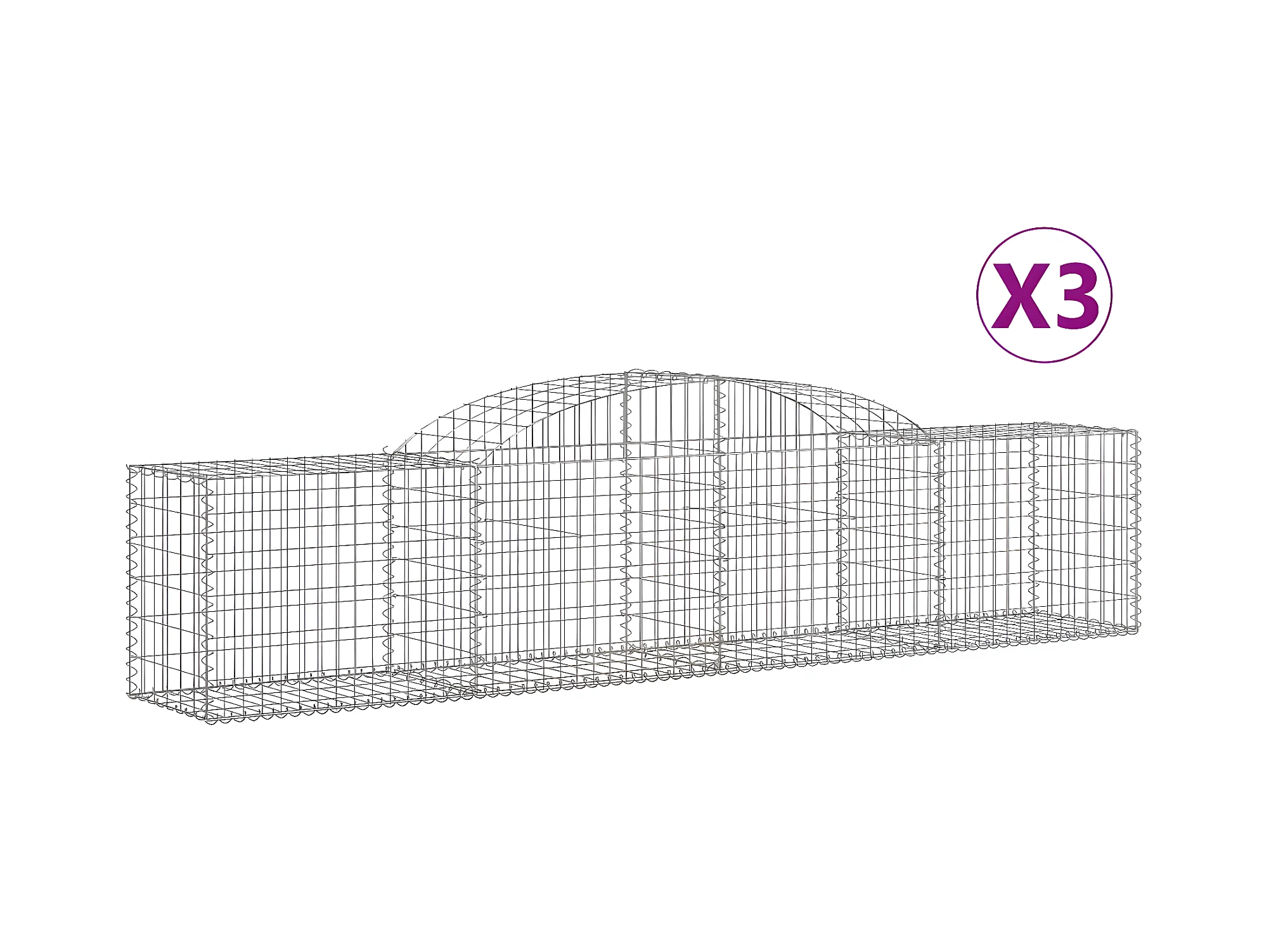 Paniers à gabions arqués 3 pcs 200x50x60/80 cm Fer galvanisé WVGQ9261