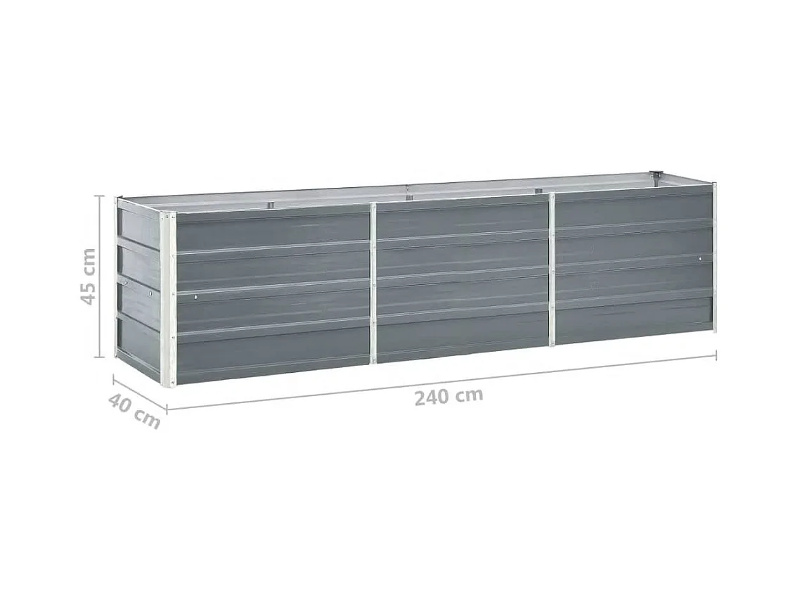 Jardinière surélevée acier galvanisé 240x40x45 cm gris