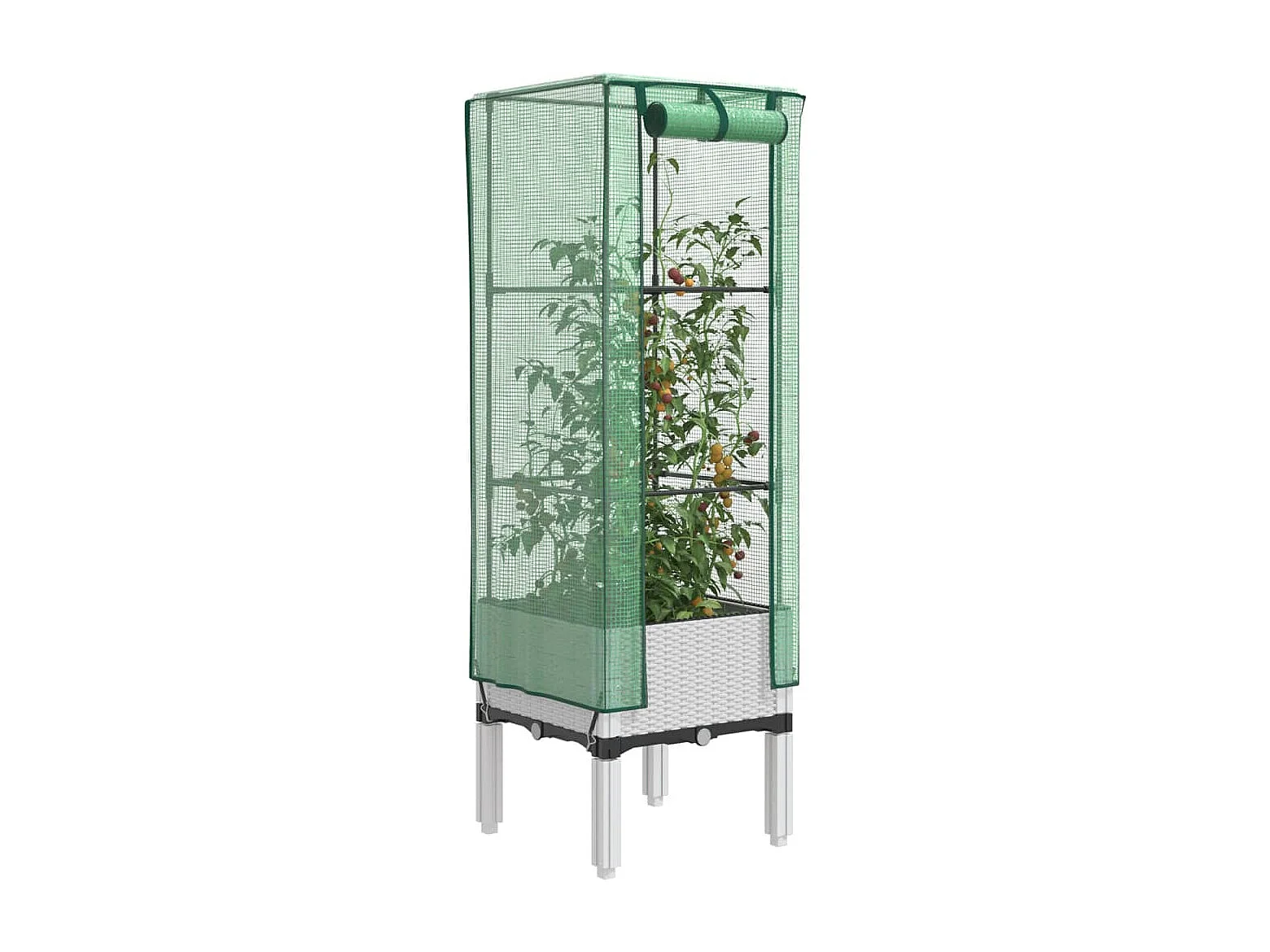 Jardinière surélevée avec housse aspect rotin 40x40x140 cm