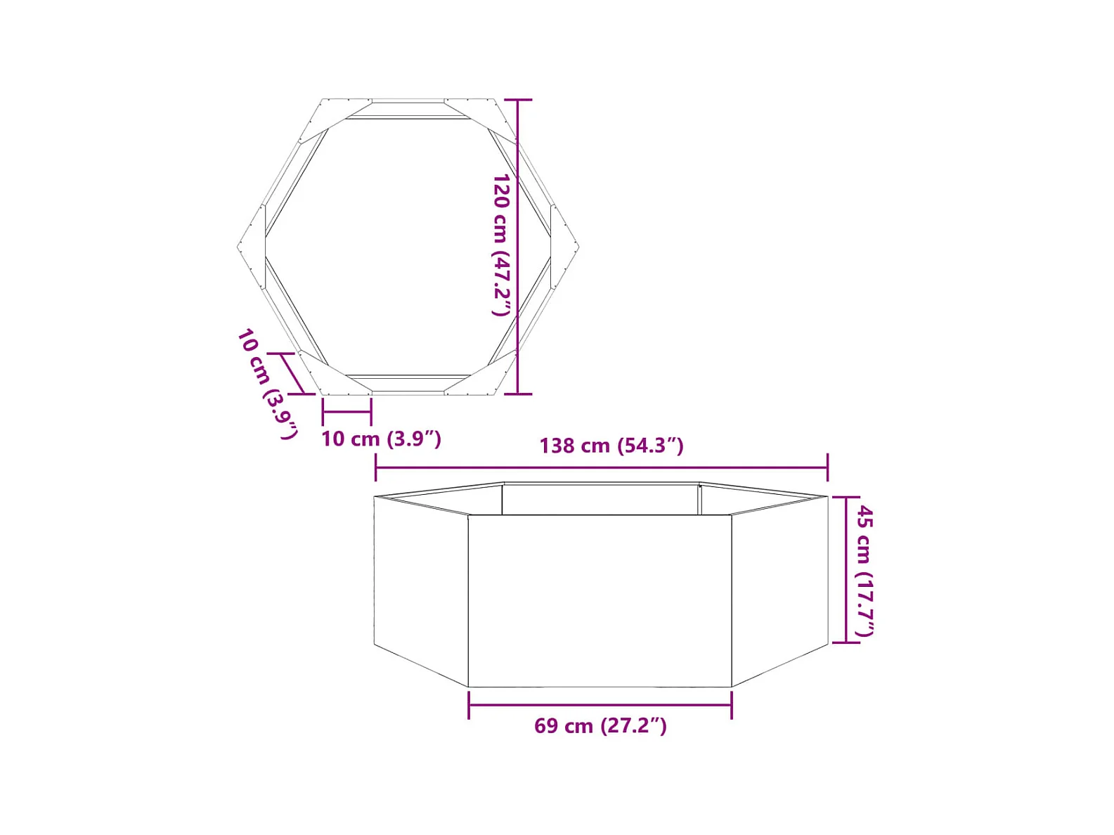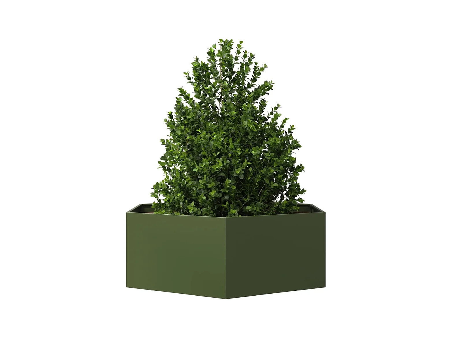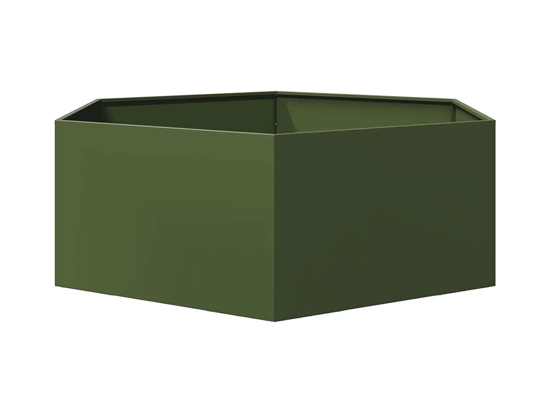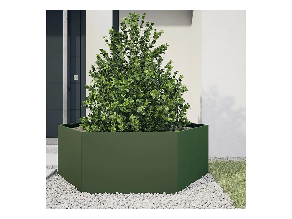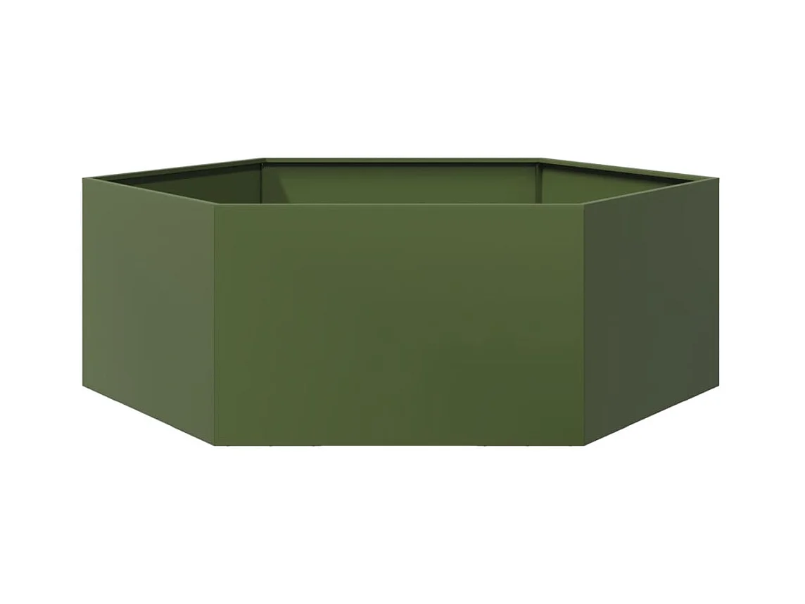 Jardinière vert olive hexagone 138x120x45 cm acier