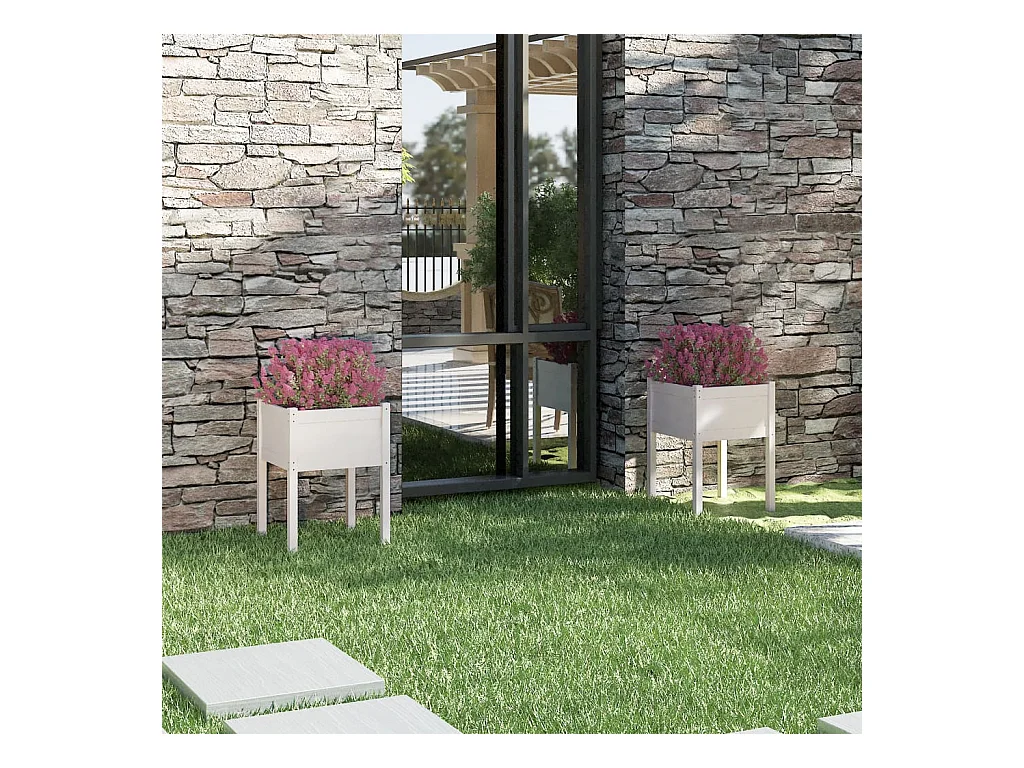 Jardinières d'extérieur 2 pcs Blanc 31x31x70 cm Bois de pin