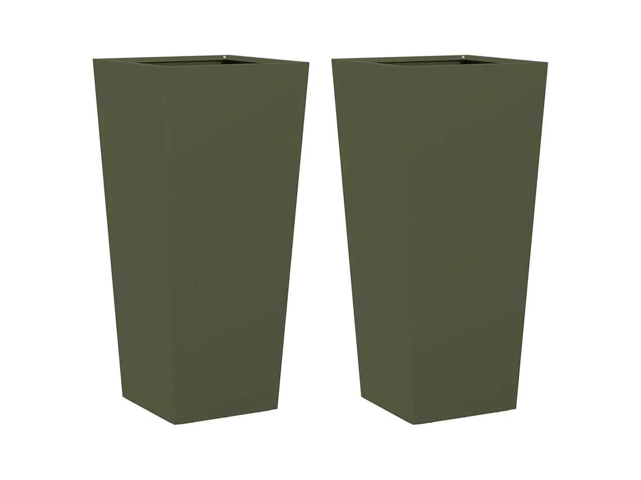 Jardinières 2 pcs vert olive 35x35x75 cm acier