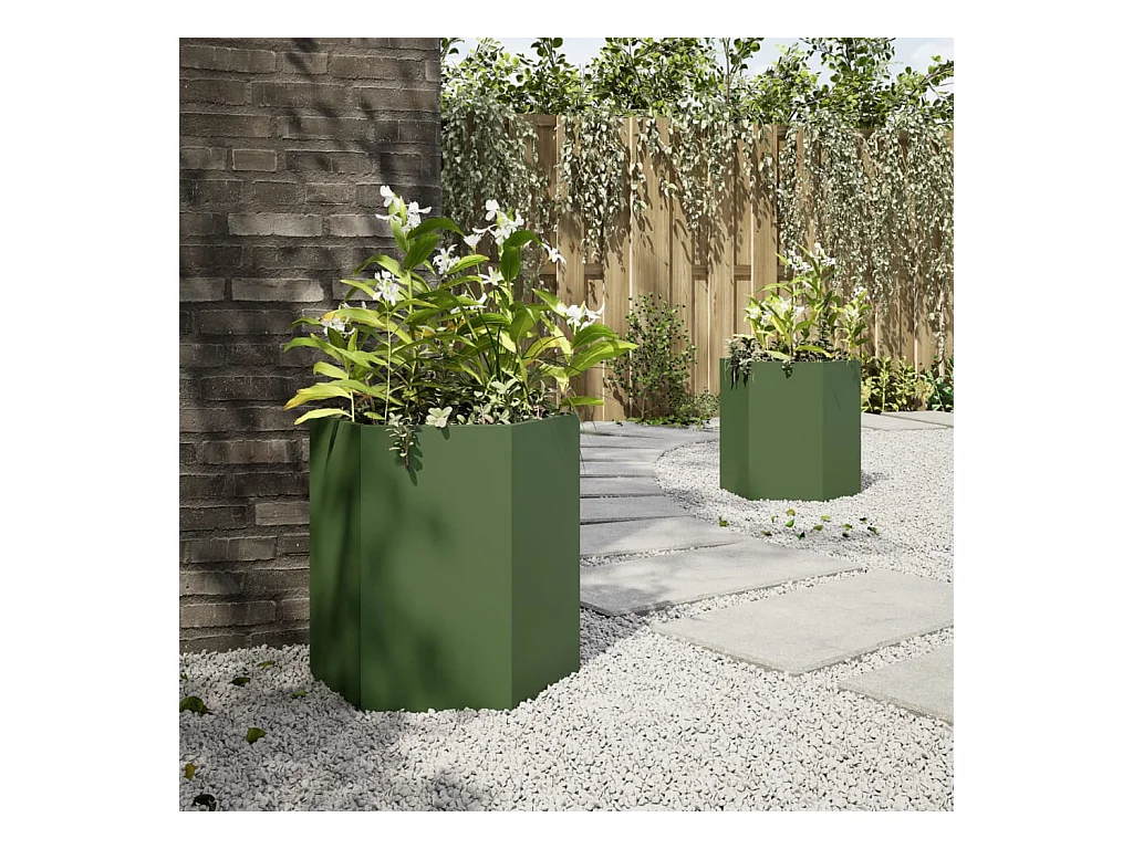 Jardinières 2 pcs vert olive hexagone 46x40x45 cm acier