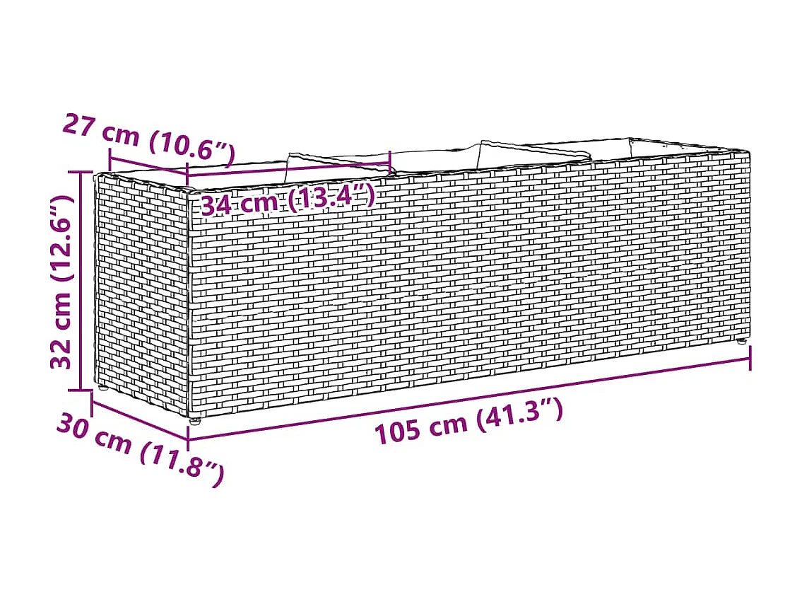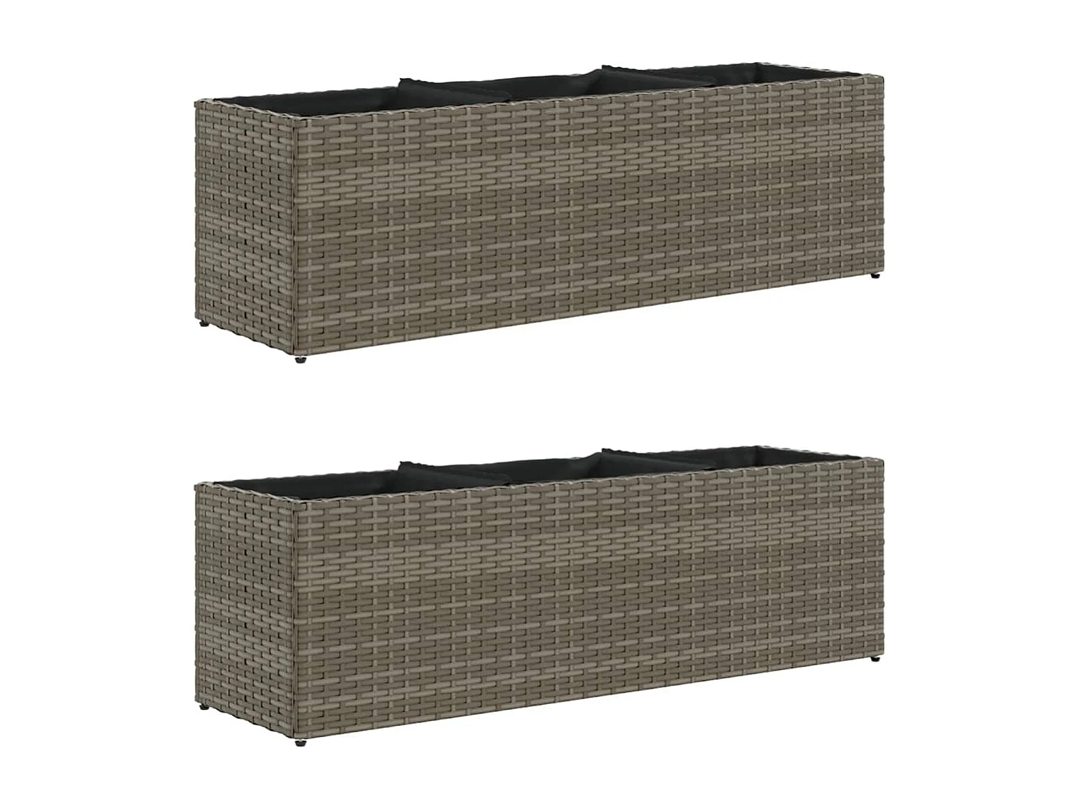 Jardinières avec 3 pots 2 pcs gris 105x30x32 cm résine tressée
