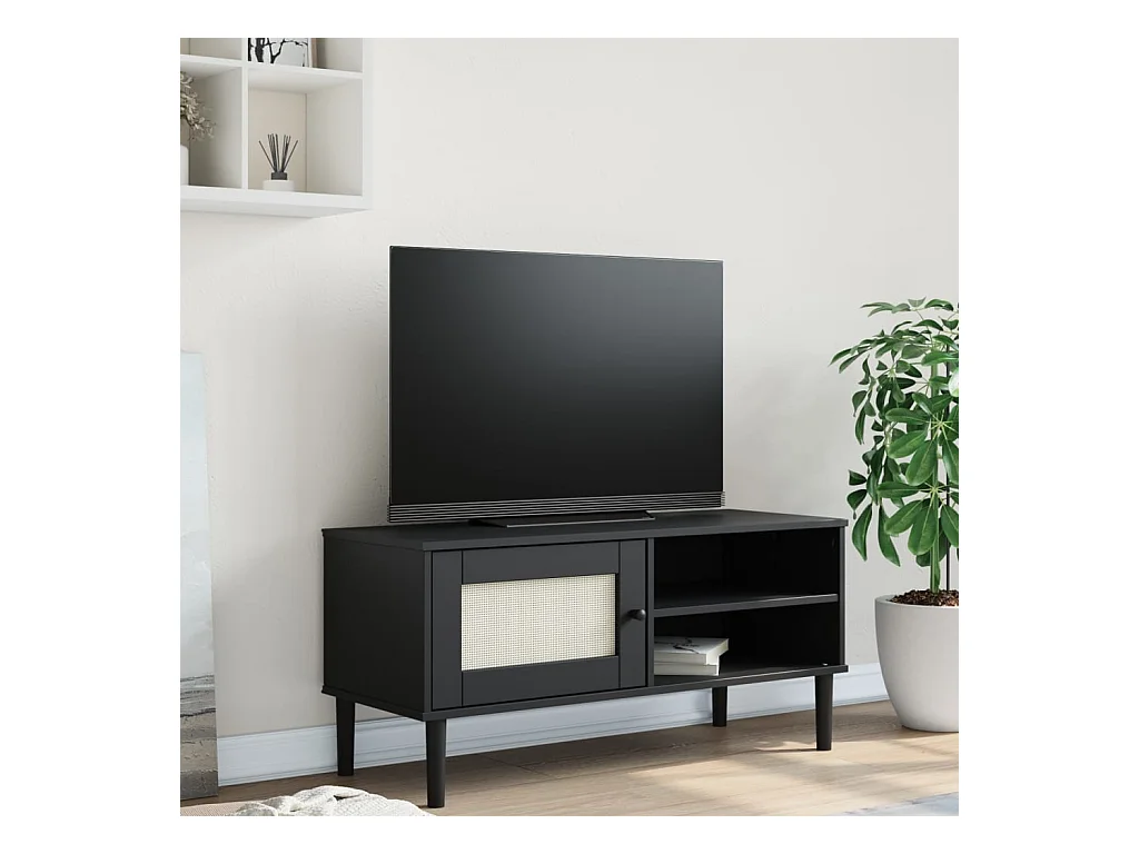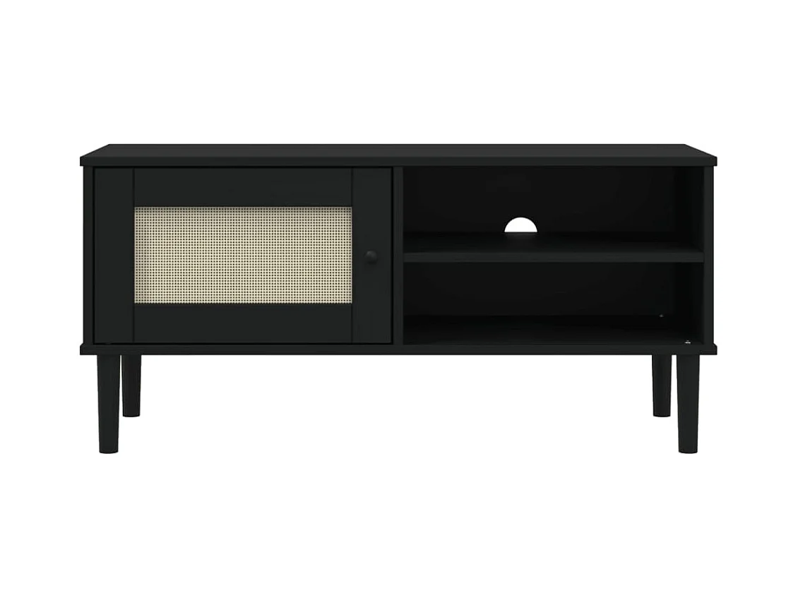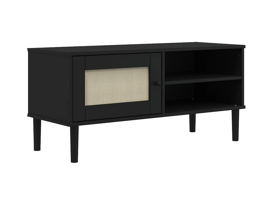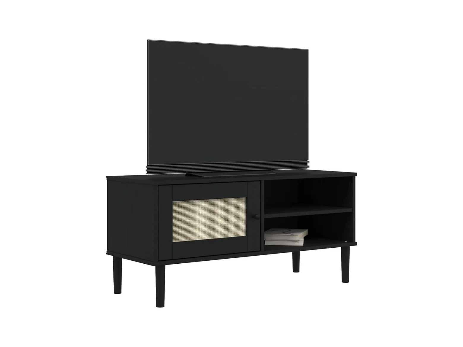 Jere Meuble TV SENJA aspect rotin noir 106x40x49cm bois massif pin