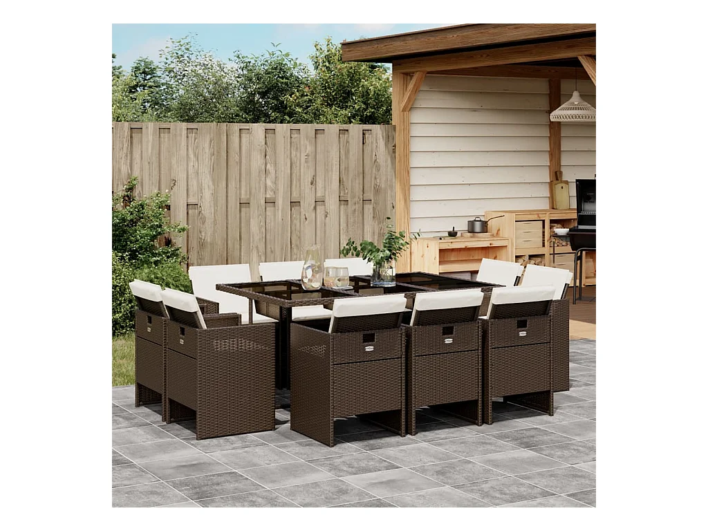 Jeroen Ensemble à manger de jardin et coussins 11 pcs marron rotin