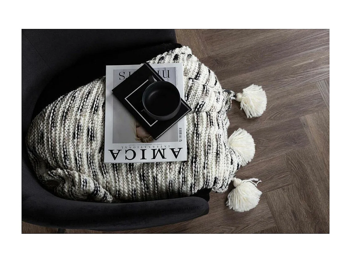 Plaid Avec Pompons "Unny" 130x170cm Gris
