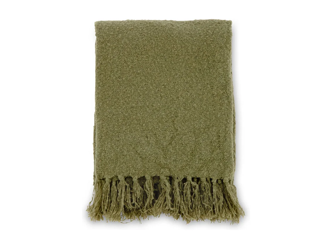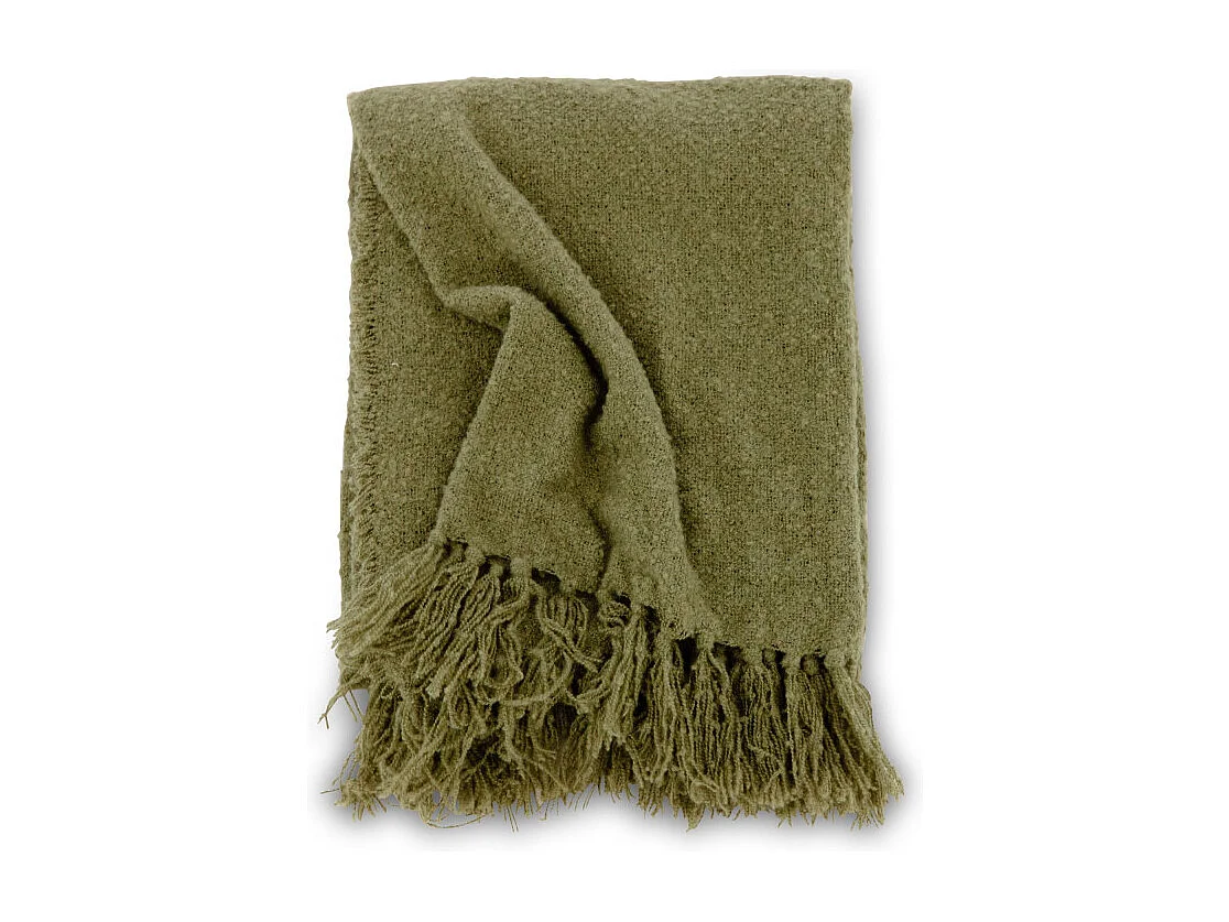 Plaid Uni à Franges "Stanly" 130x170cm Vert Mousse