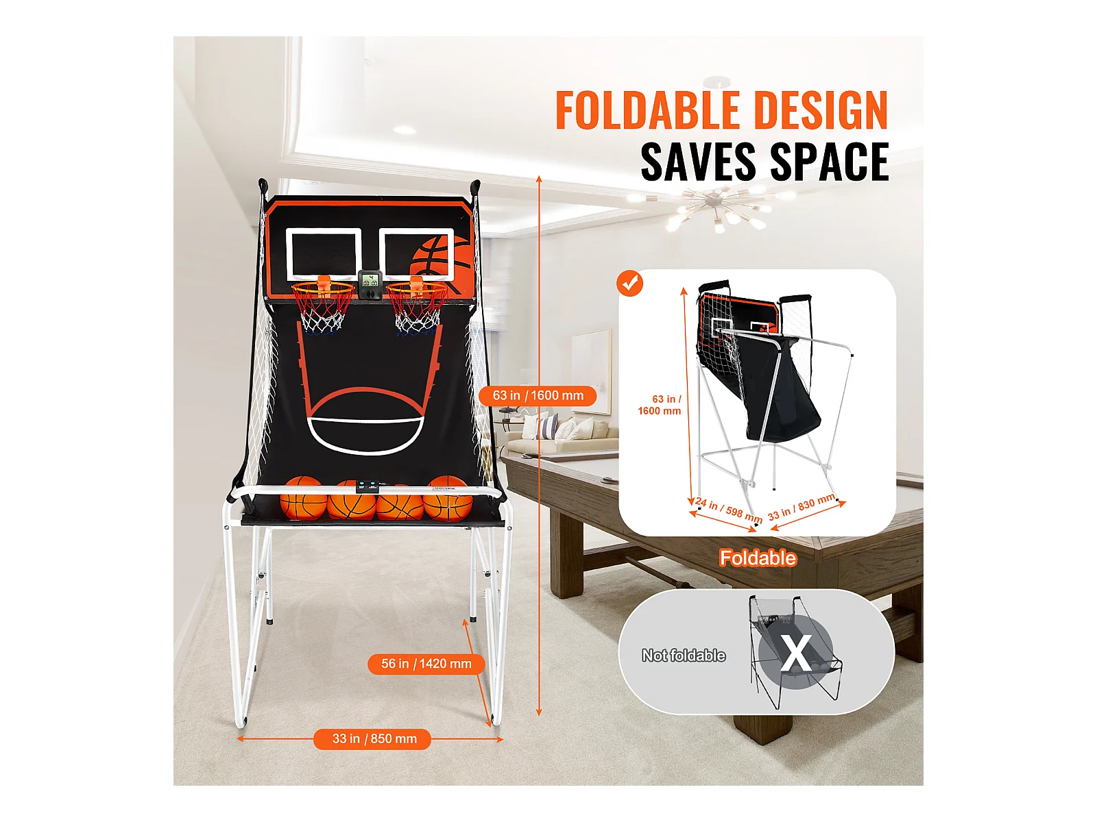 Jeu d'Arcade de Basketball SucceBuy Pliable d'Intérieur à Double Tir pour 2 Joueurs et 4 Balles