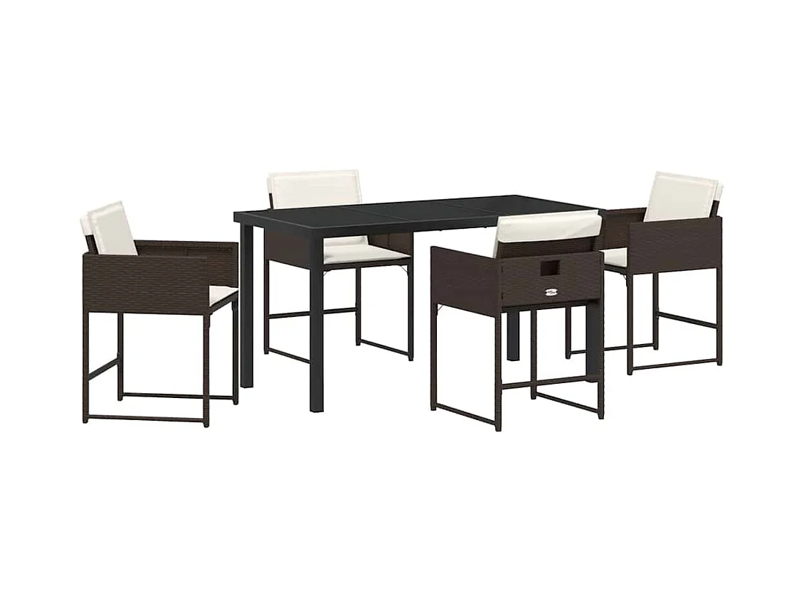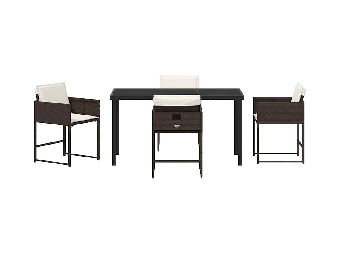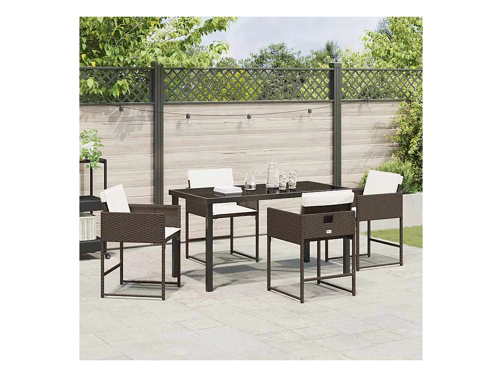 Ensemble de repas de jardin 5 pièces avec coussins marron en rotin poly