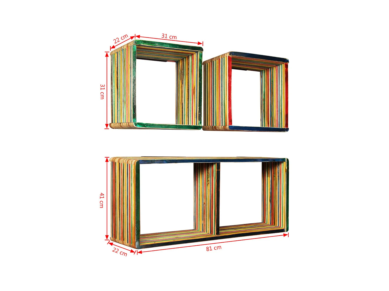 Jeu d'étagère murale 3 pcs Teck massif recyclé Multicolore
