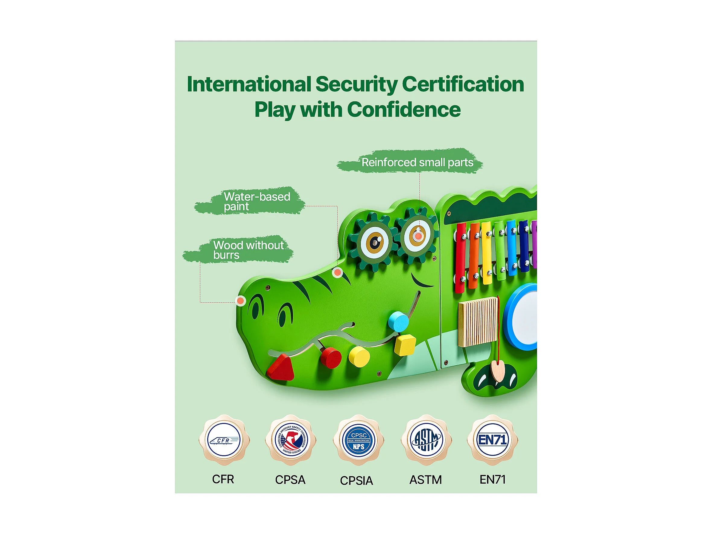 Jeu Mural de Motricité SucceBuy, Tableau d'Activités Crocodile avec 9 Jeux, Jouet Mural Sensoriel Montessori pour Enfants de 3 à 12 Ans
