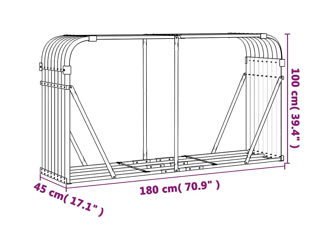 Jilles Porte-bûches marron 180x45x100 cm acier galvanisé