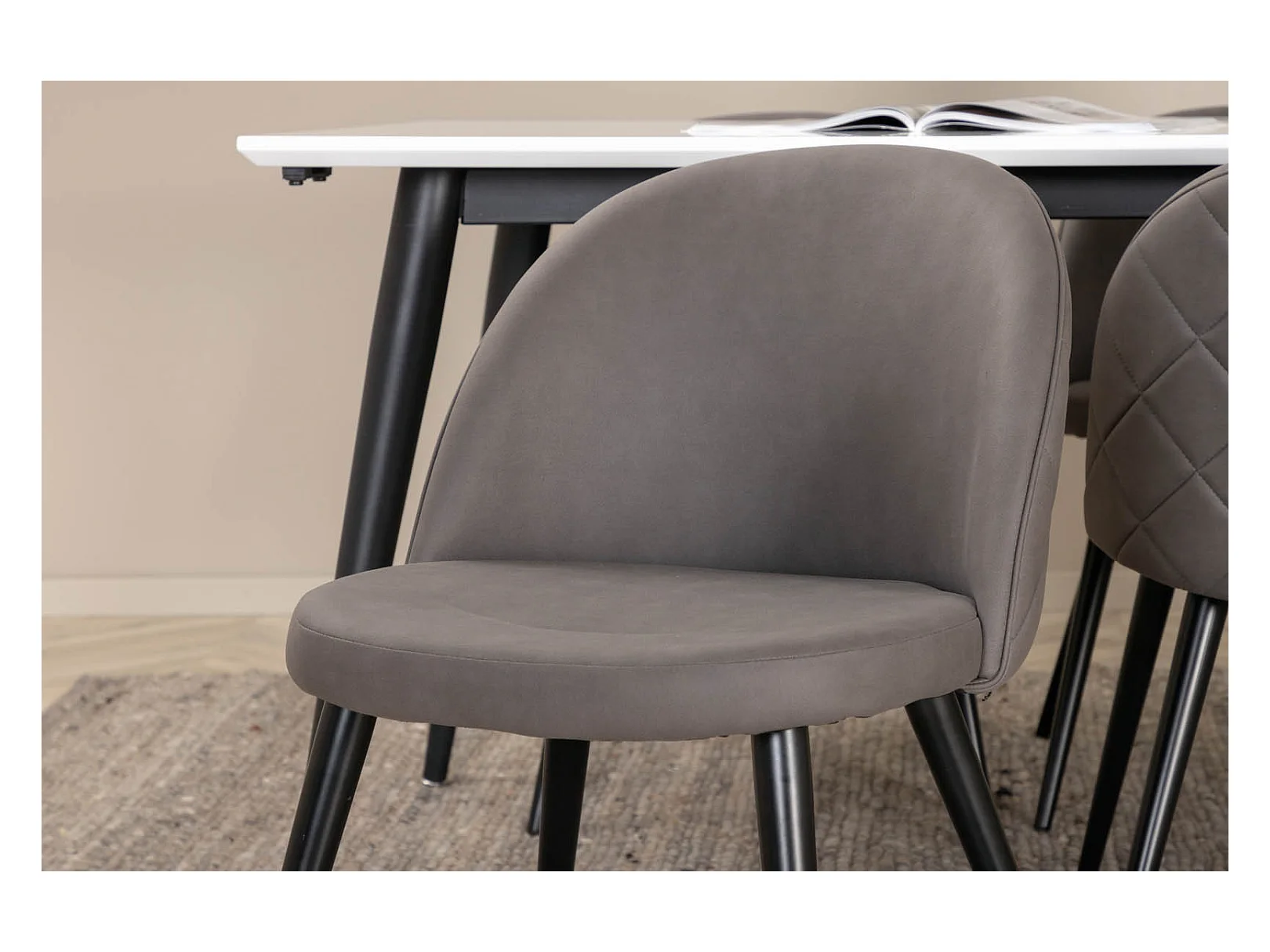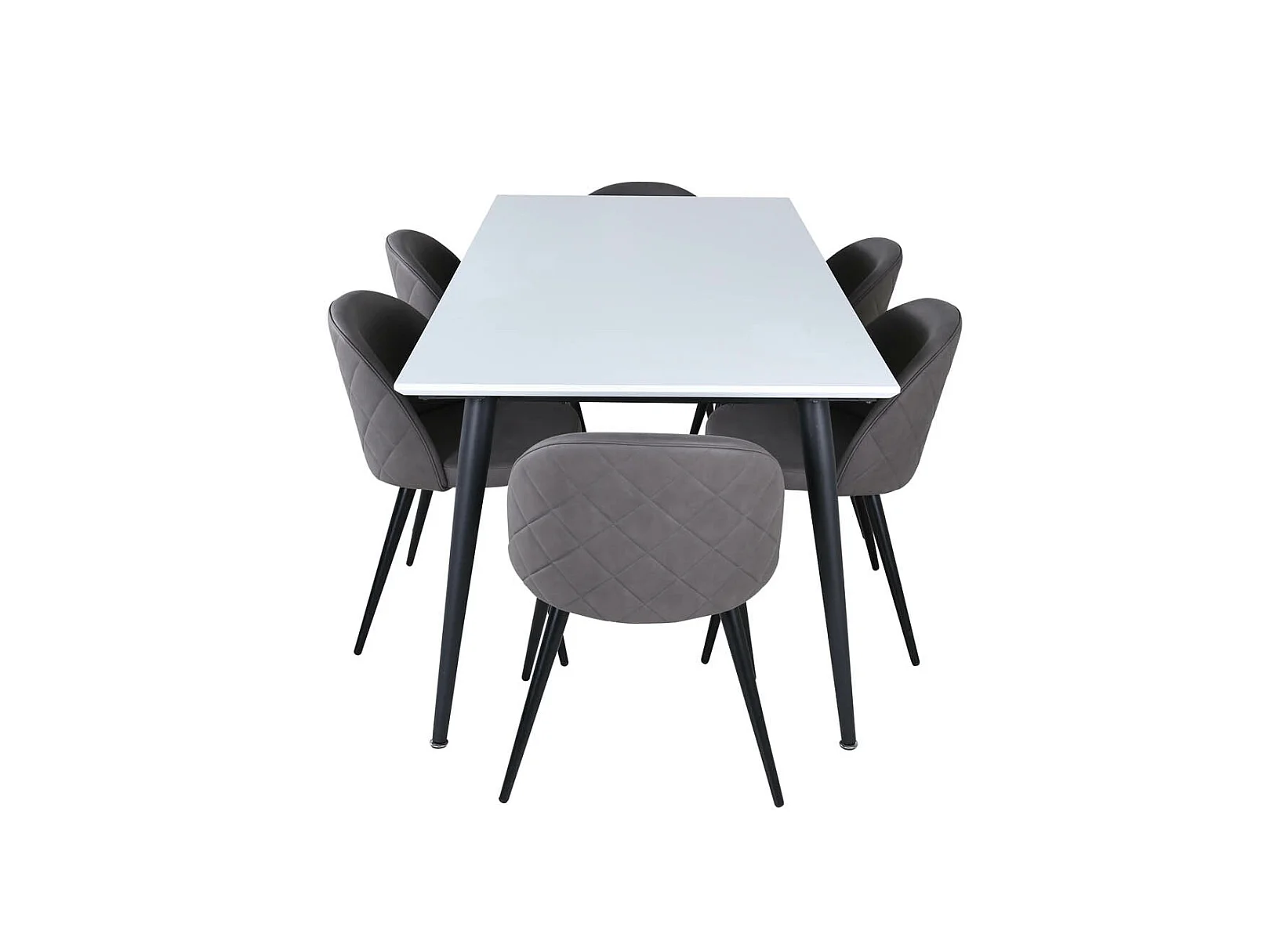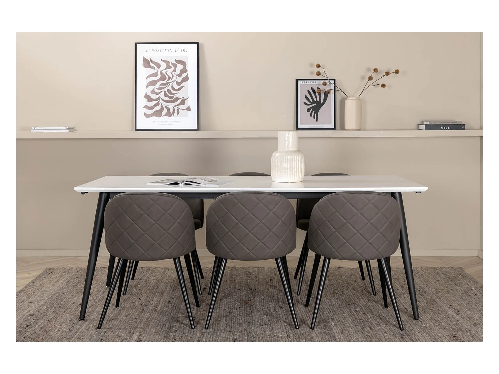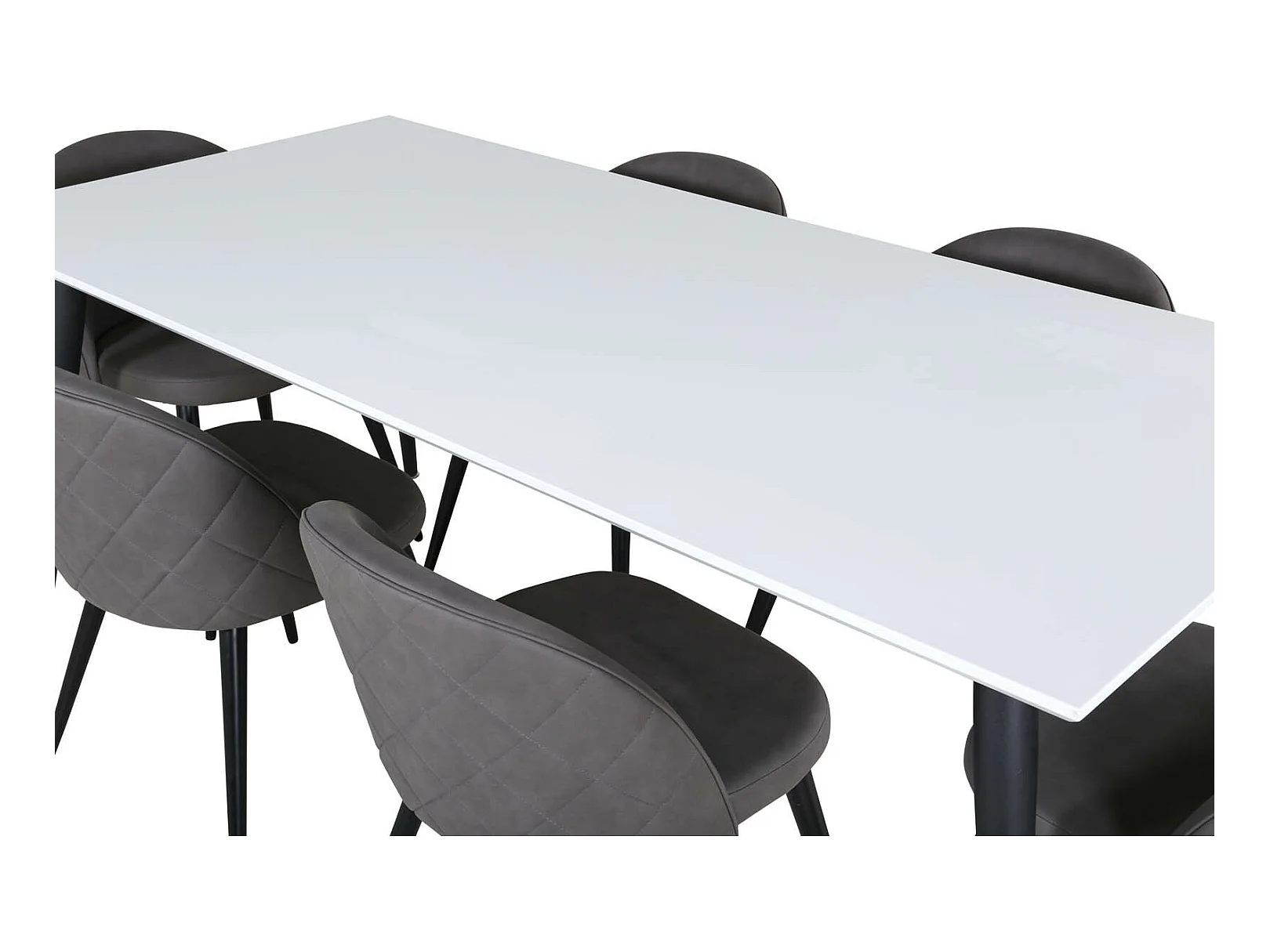 Jimmy195 ensemble table, table extensible longueur cm195 / 285 blanc et 6 Velvet Stitches chaises gris.