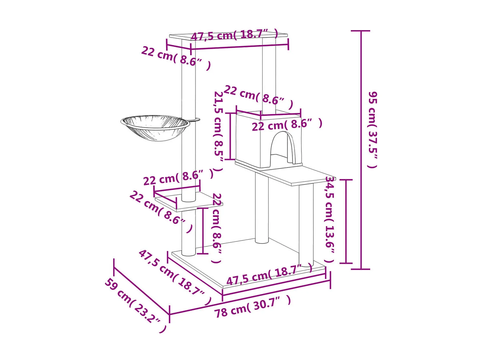 Atoka Arbre à chat avec griffoirs en sisal crème 85,5 cm