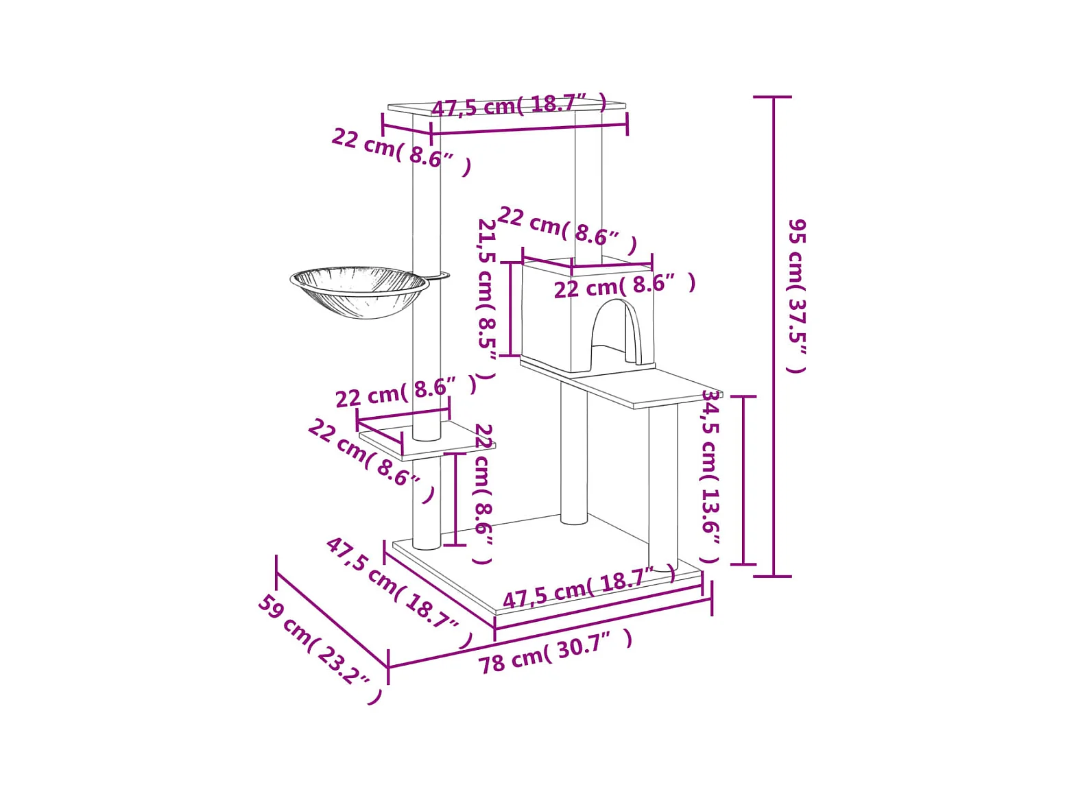 Jorva Arbre à chat avec griffoirs en sisal gris foncé 95 cm