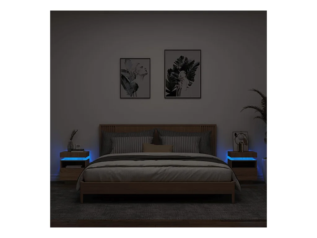 Josane Armoires de chevet avec lumières LED 2 pcs chêne sonoma