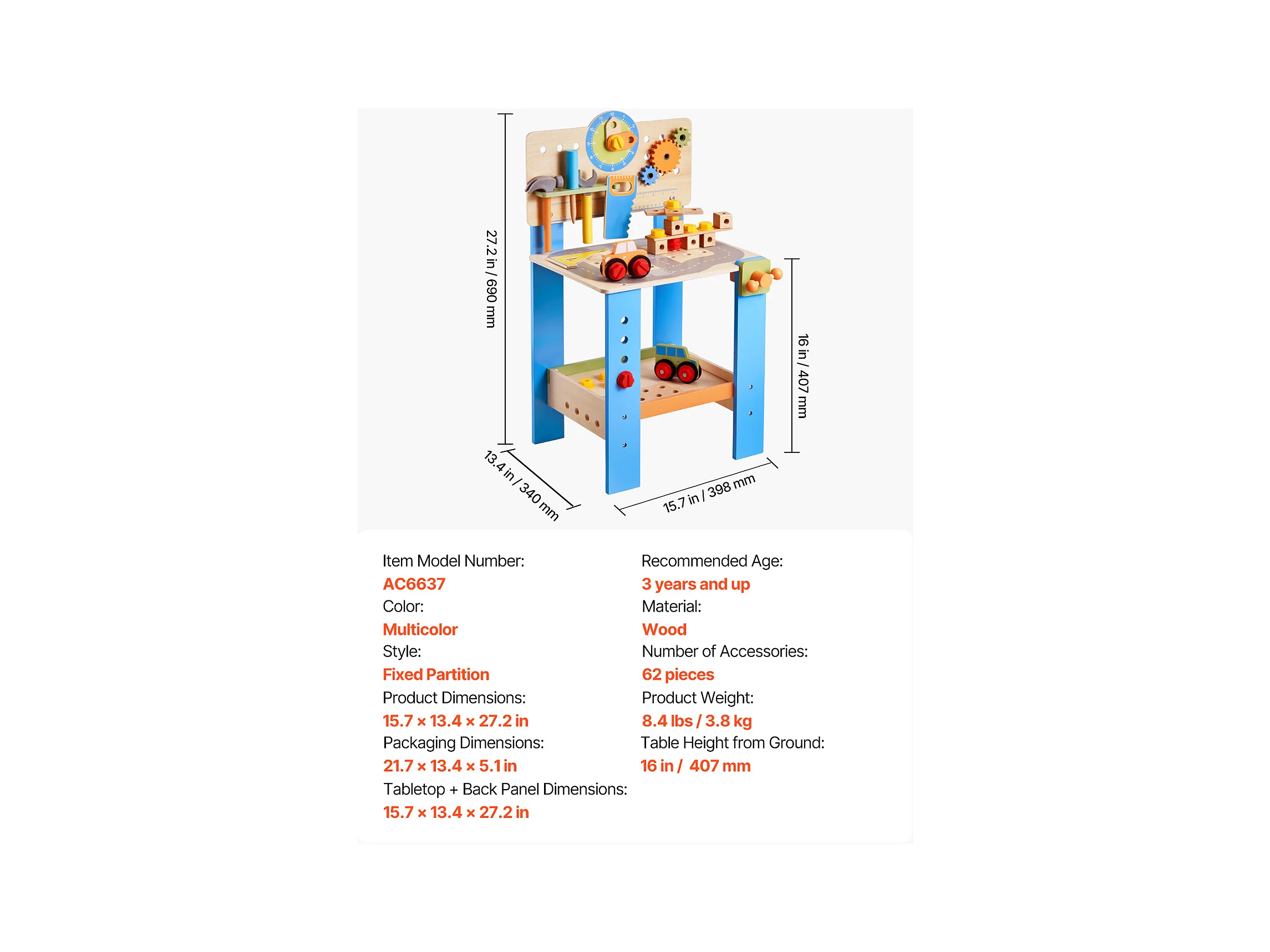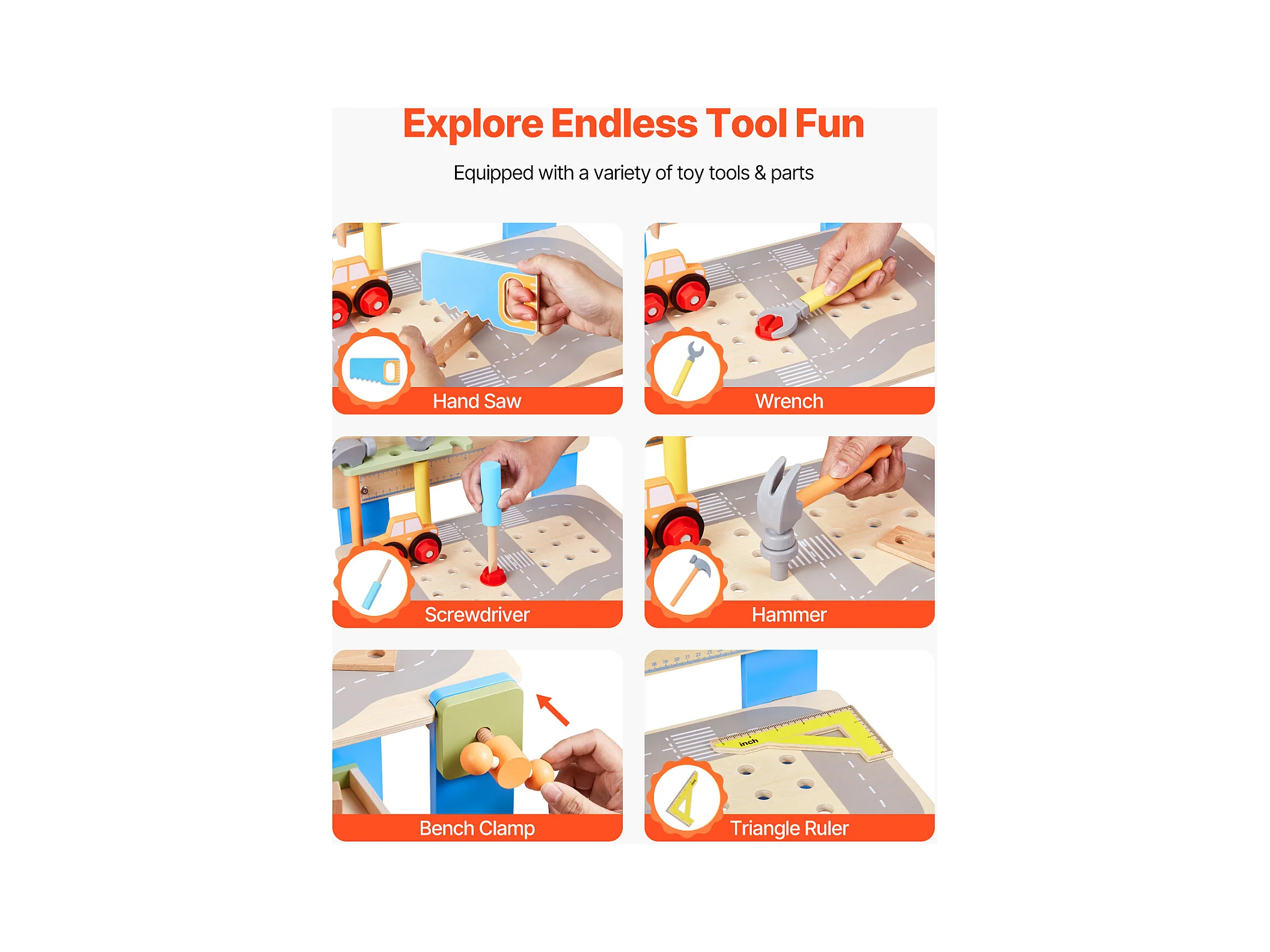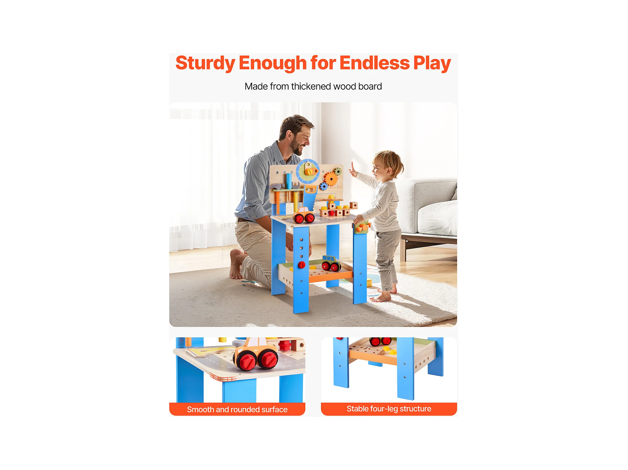 Jouet d'Établi, SucceBuy Établi en Bois pour Enfants avec 62 Pièces et Outils Réalistes