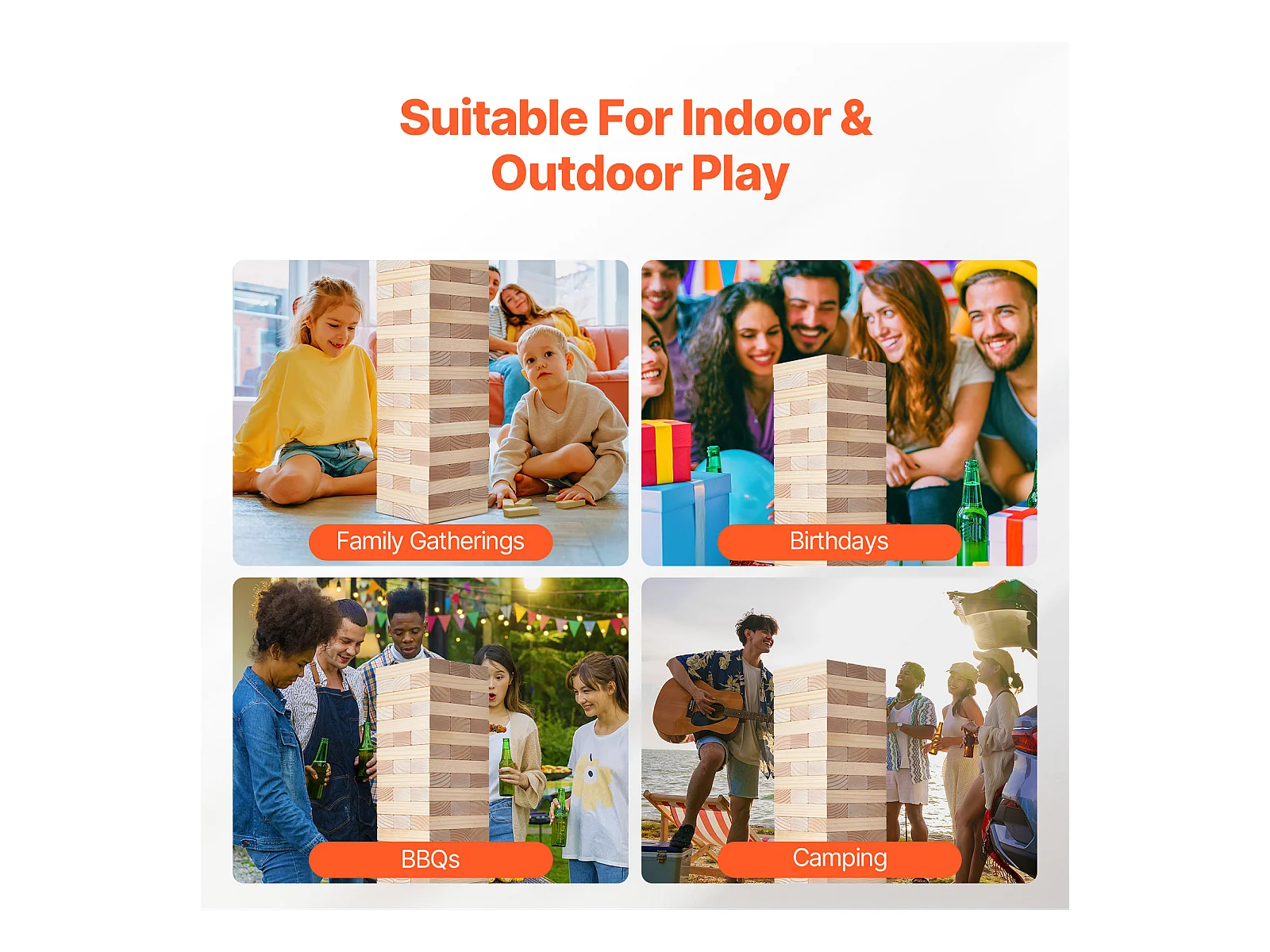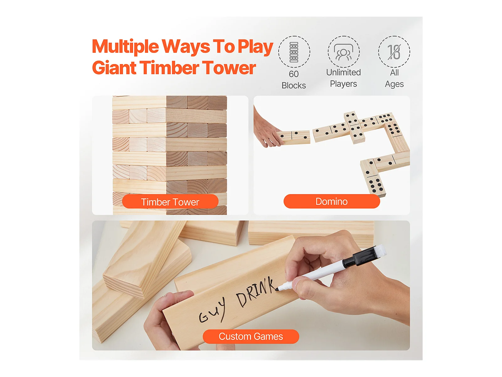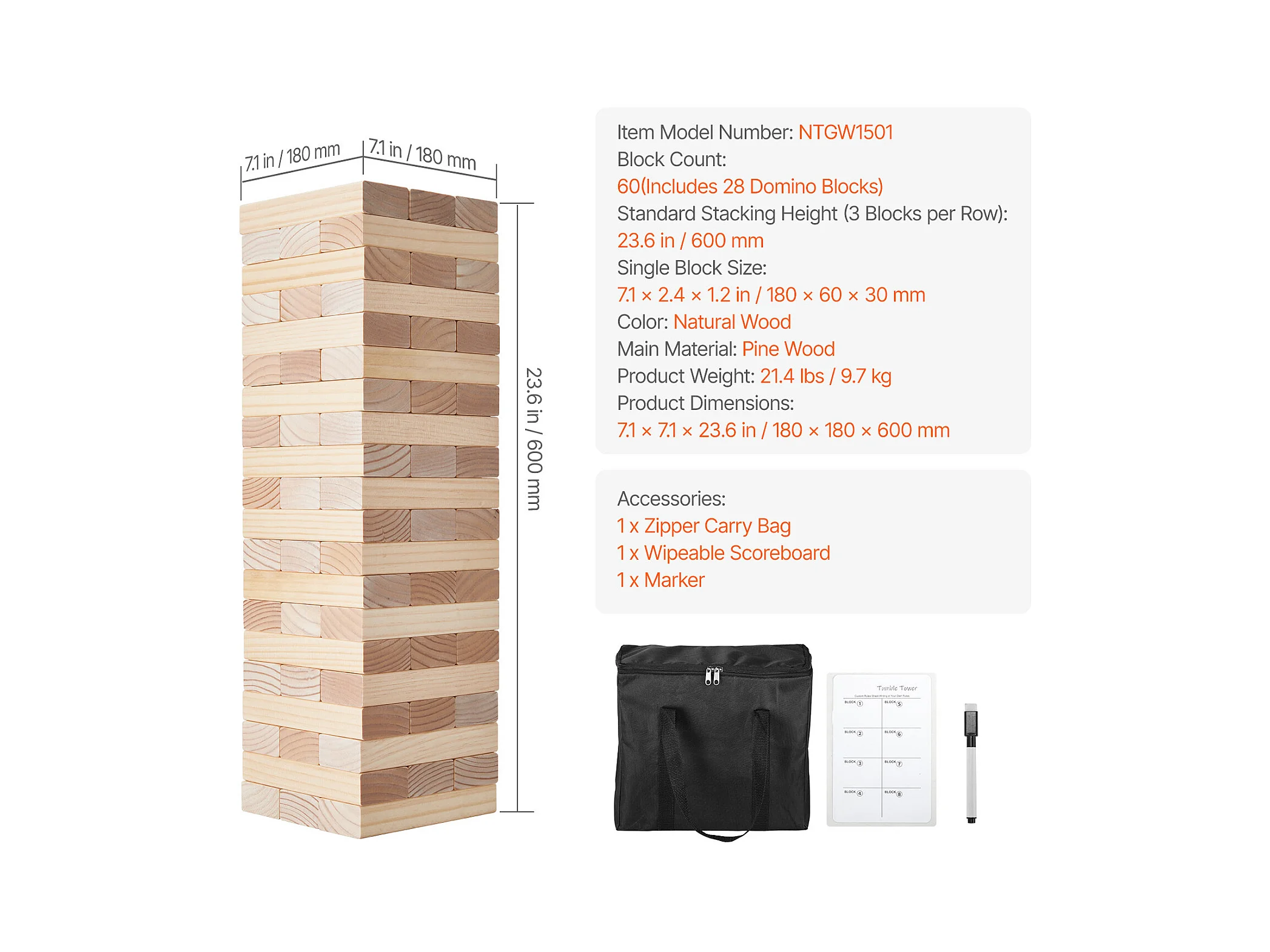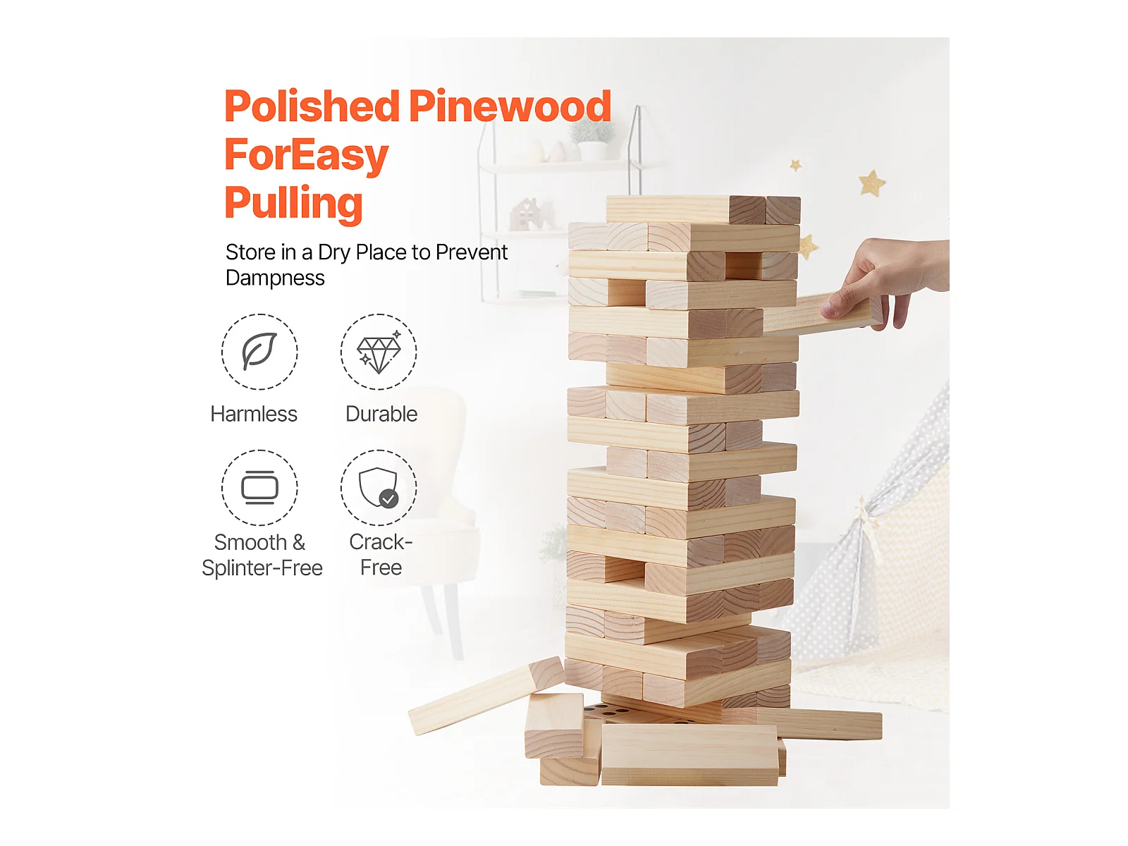 Jouet en Bois à Bascule SucceBuy, 60 Blocs, Tour Géante à Bascule, Bois de Pin, Sac