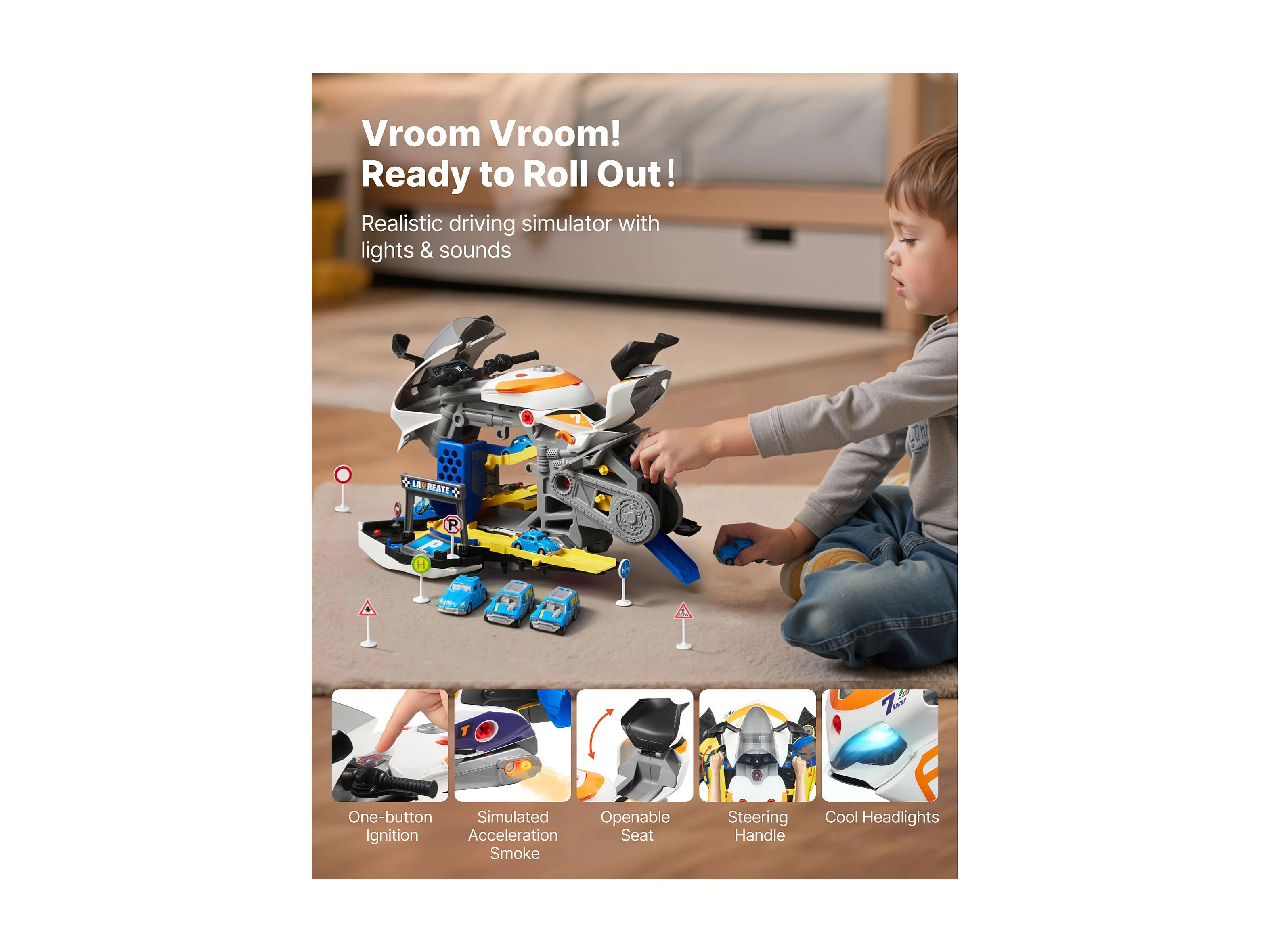 Jouet Moteur Moto SucceBuy, 25 Pièces, Jouet Mécanicien Moto avec Pièces Amovibles, Lumières et Sons, Simulation de Conduite et de Course sur Piste, Jaune