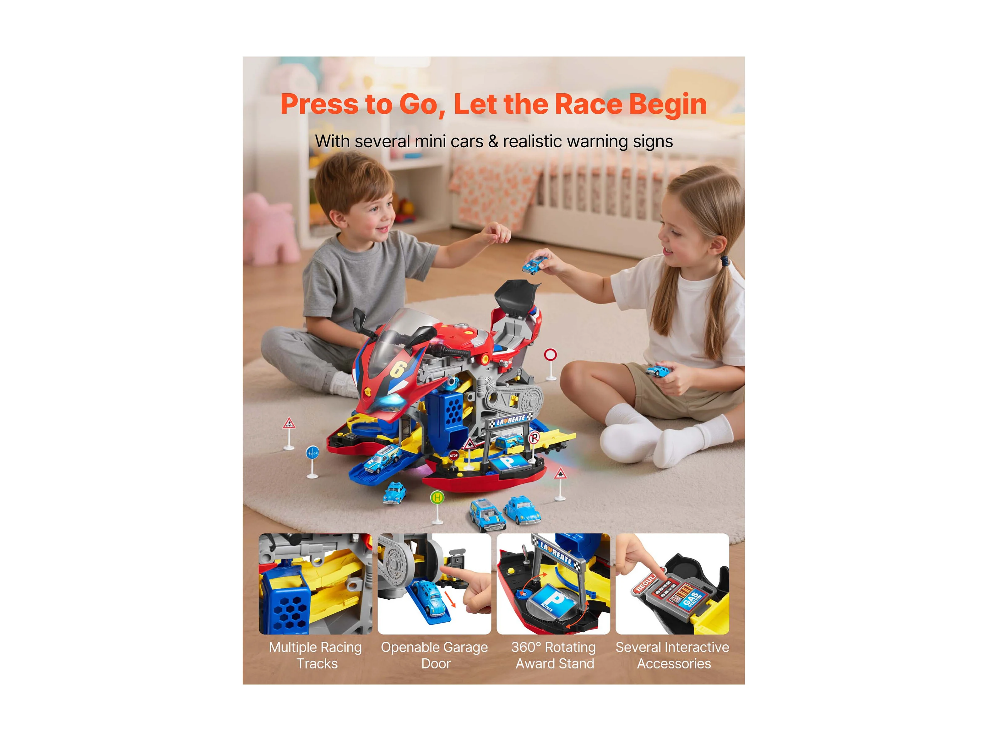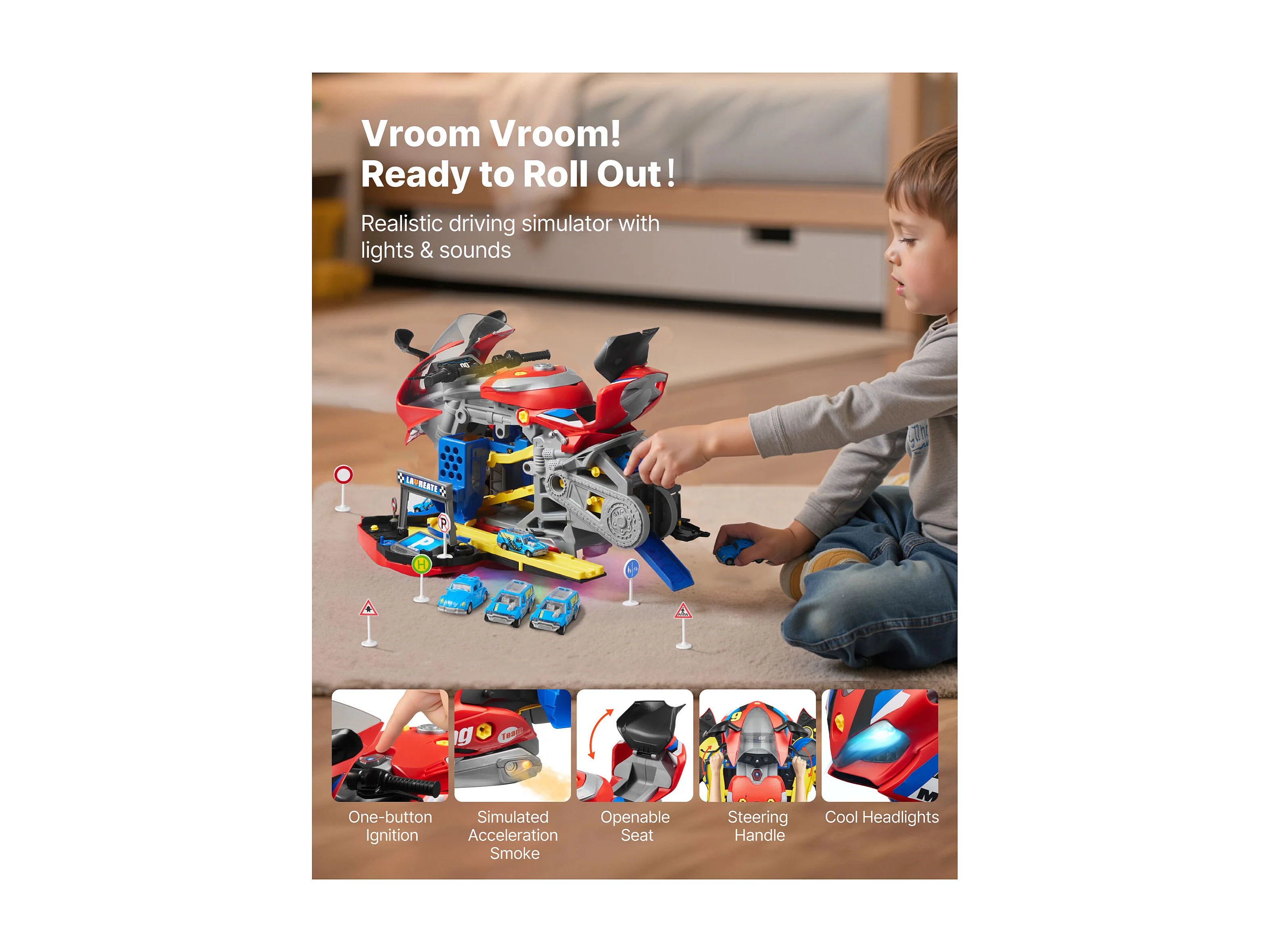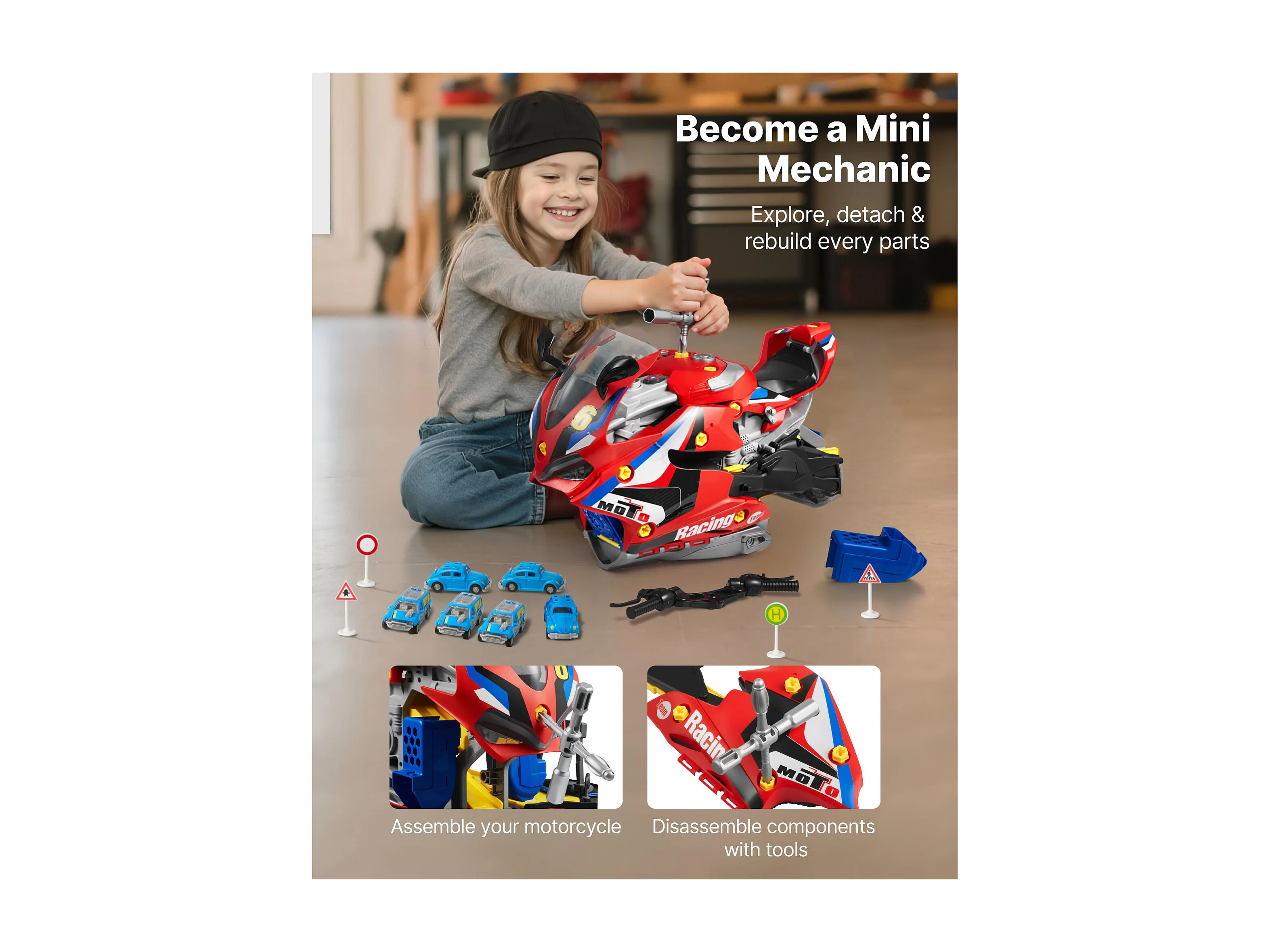 Jouet Moteur Moto SucceBuy, 25 Pièces, Jouet Mécanicien Moto avec Pièces Amovibles, Lumières et Sons, Simulation de Conduite et de Course sur Piste, Rouge