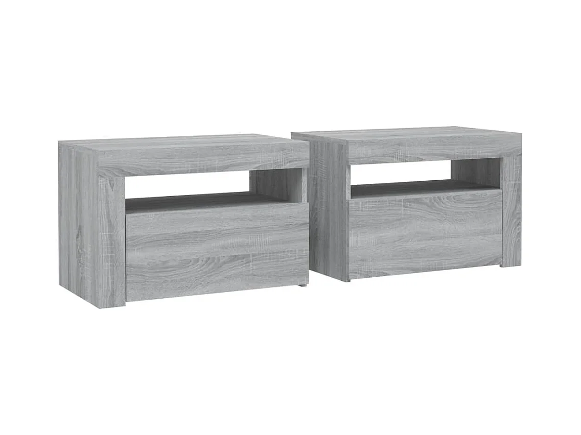 Julian Tables de chevet 2 pcs avec LED sonoma gris 60x35x40 cm