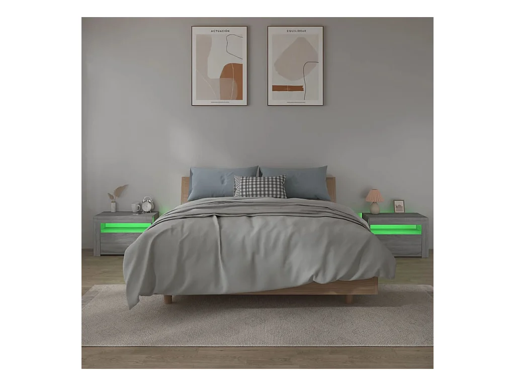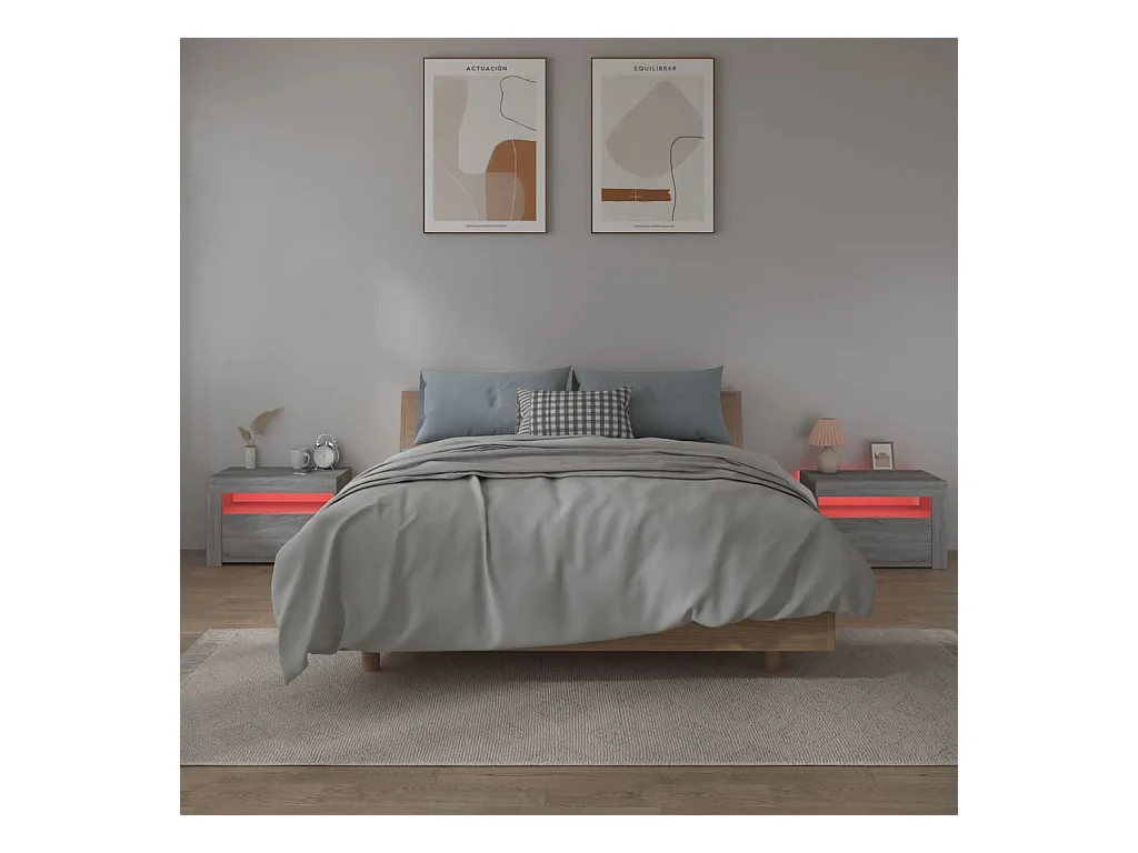 Marit Elise Armoires de chevet et lumières LED 2 pcs sonoma gris